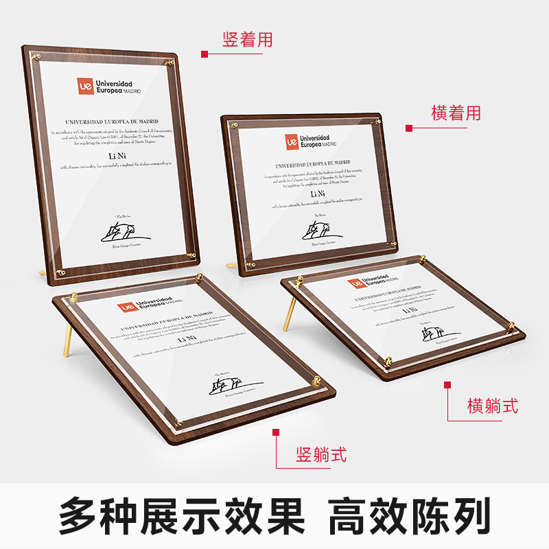 胡桃木荣誉证书展示框摆台a4奖状聘书装裱相框高级感亚克力框架