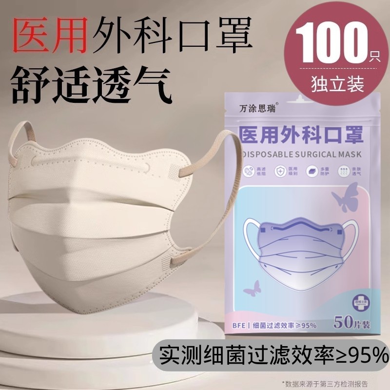 医用外科口罩一次性医疗三层官方正品旗舰店女高颜值透气单独包装