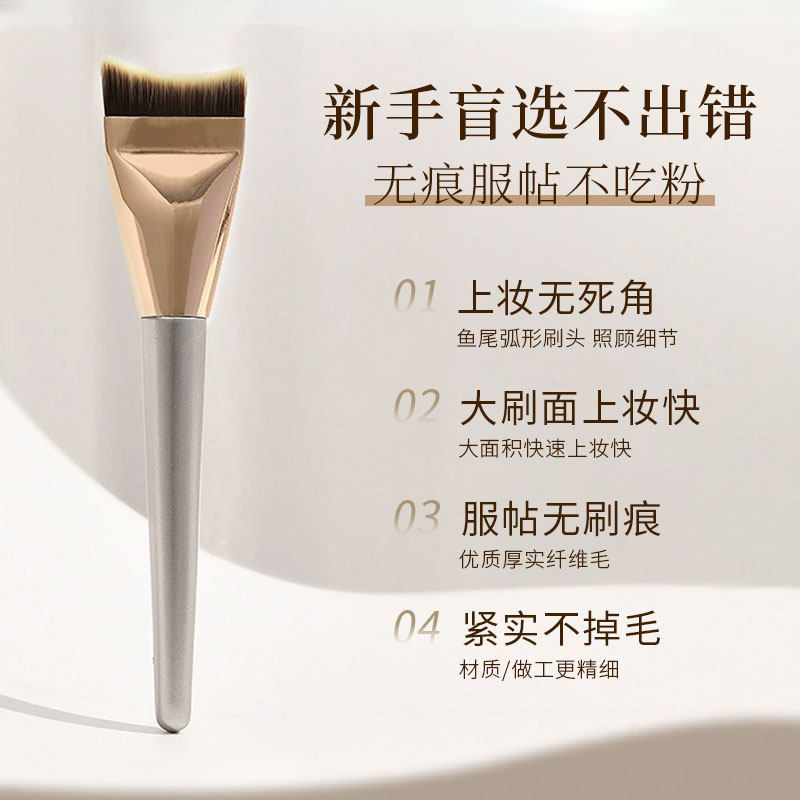 尔木萄鱼尾薄弧一字型粉底刷扁平头不吃粉刀锋无痕粉底液化妆刷子