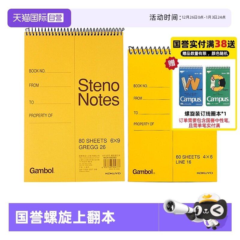 【自营】日本KOKUYO国誉线圈笔记本英语单词本渡边gambol螺旋上翻本a5便携本A6小分栏速记学生用草稿本塔卡沙