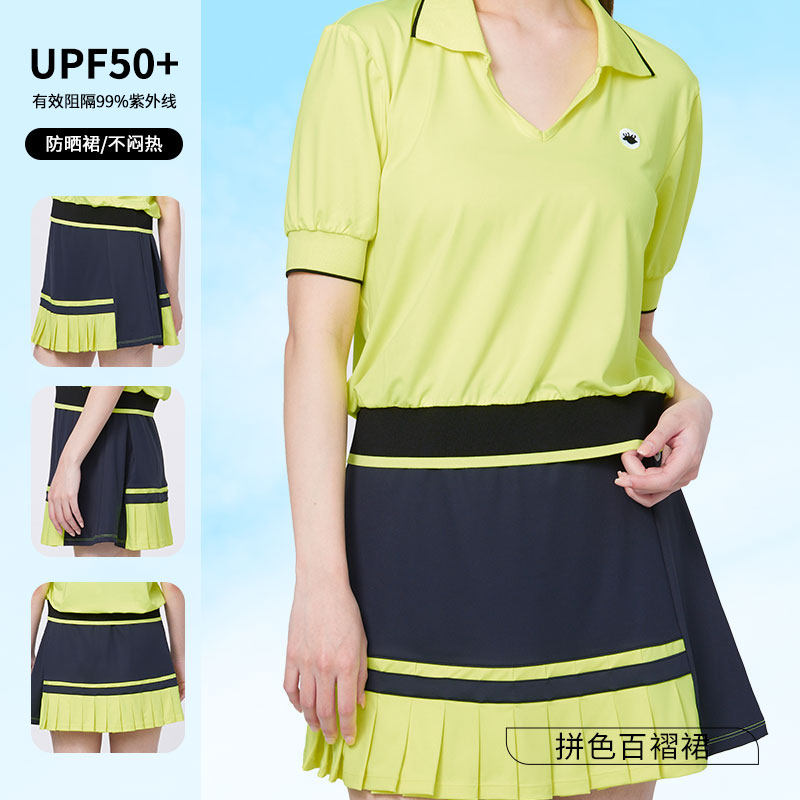 HOII/后益2025新明星同款hosea户外运动防晒夏女半身裙拼色百褶裙