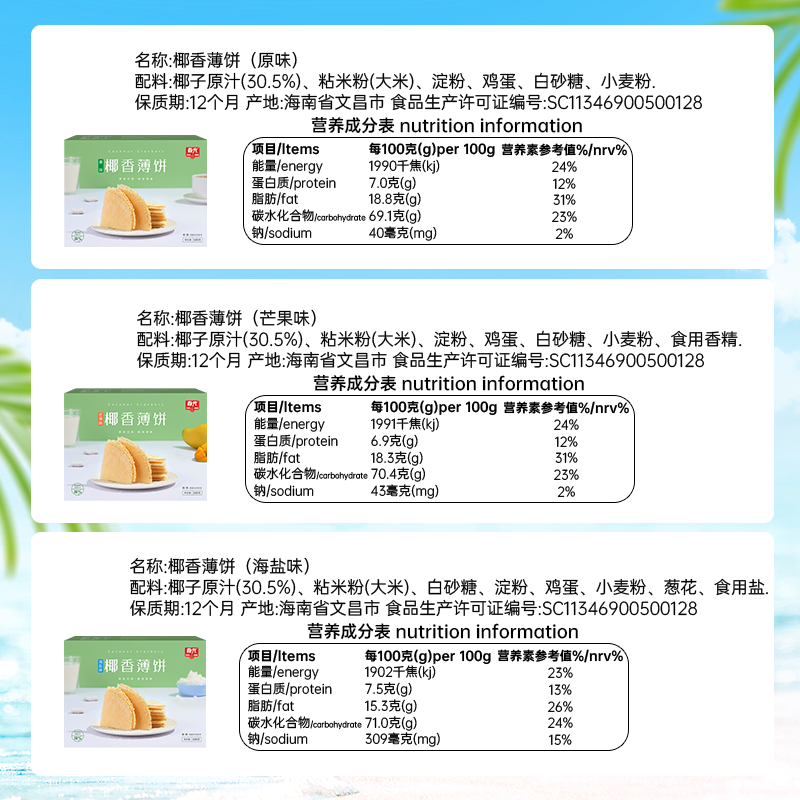 零食春光椰香薄饼海南特产小包薄脆饼干休闲食品小吃椰子椰香味