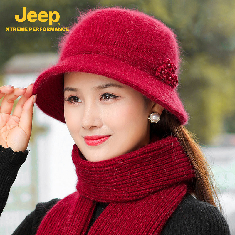 jeep吉普中老年人帽子女冬季妈妈奶奶秋冬天老太太保暖女士毛线帽