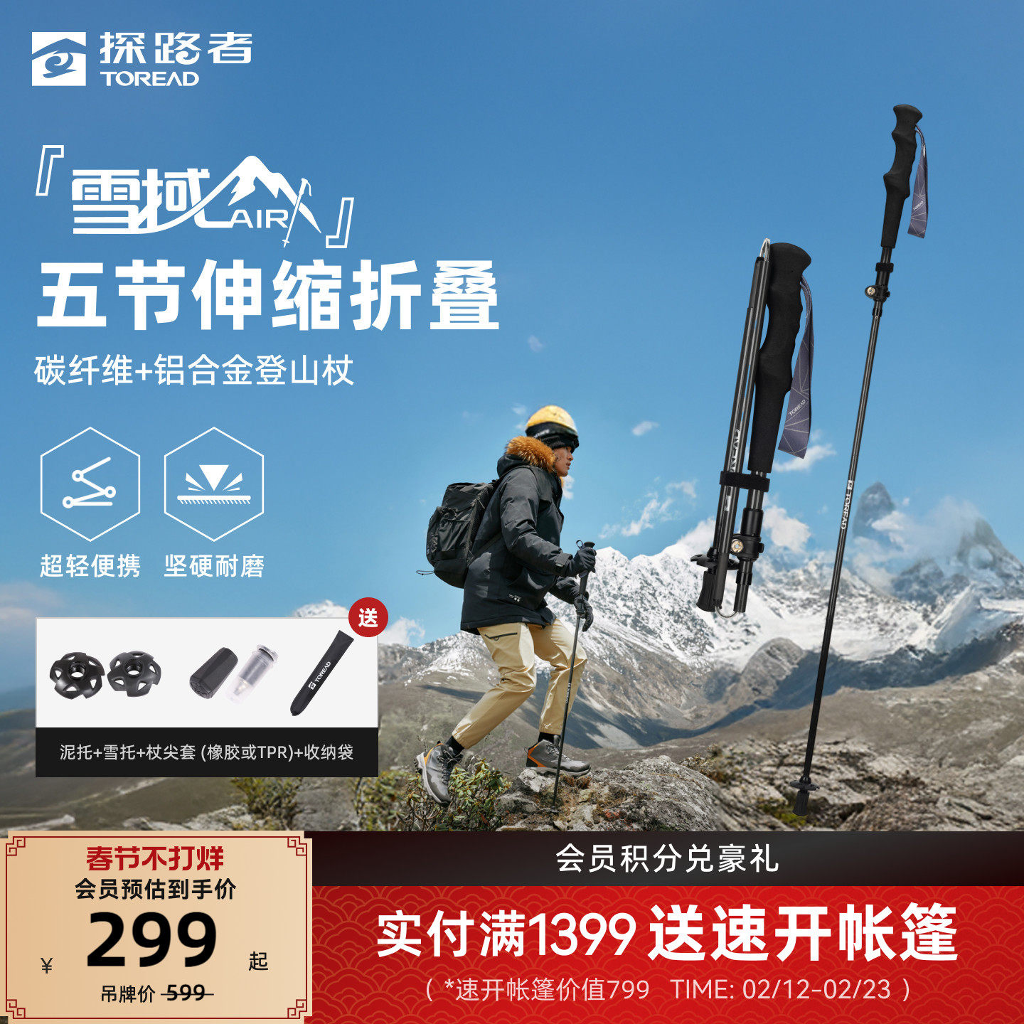 【雪域AIR】探路者登山杖户外徒步爬山装备伸缩多功能碳纤维手杖