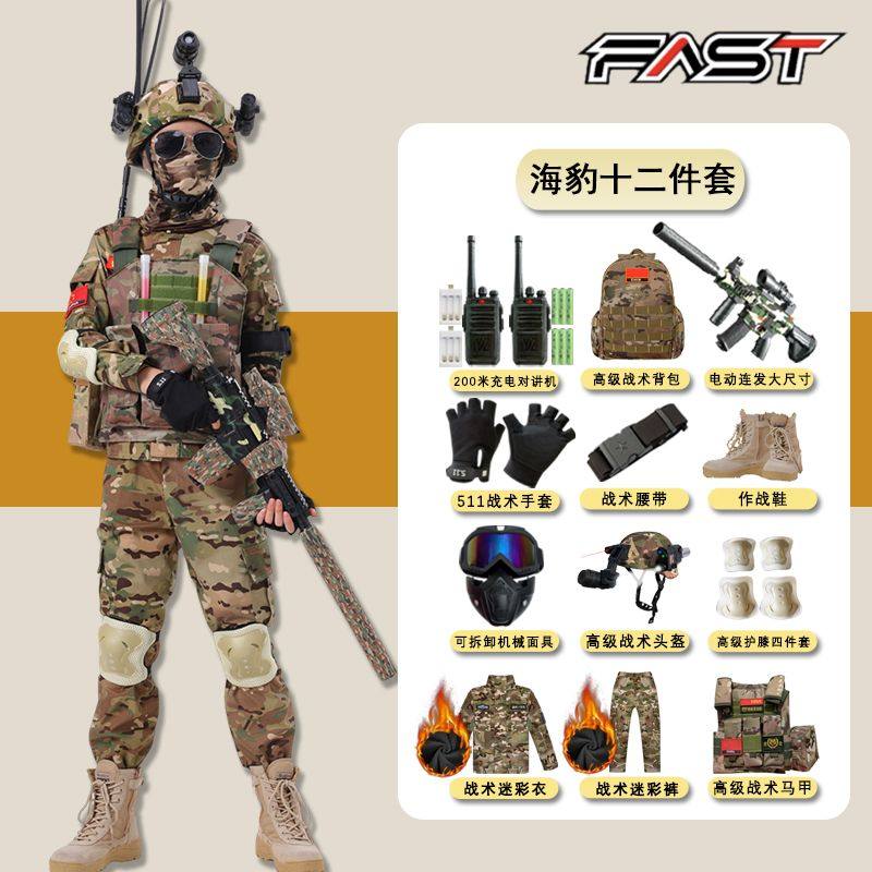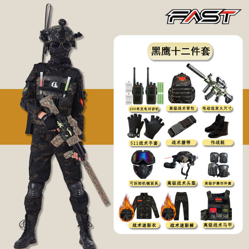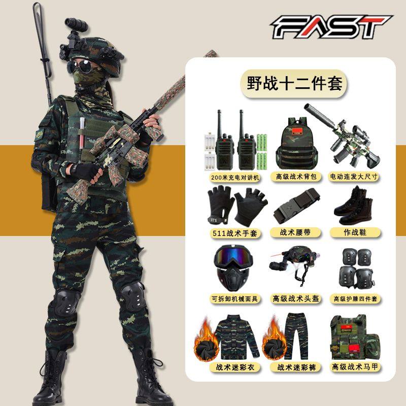 儿童加绒迷彩服套装男女童特种兵战术高端装备全套演出服冬军训服