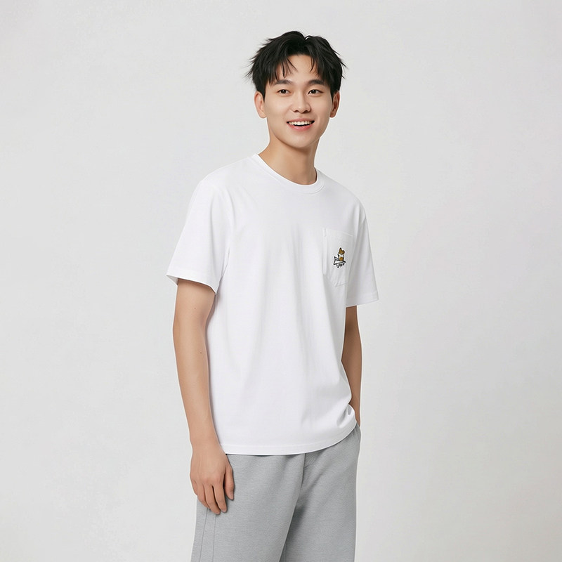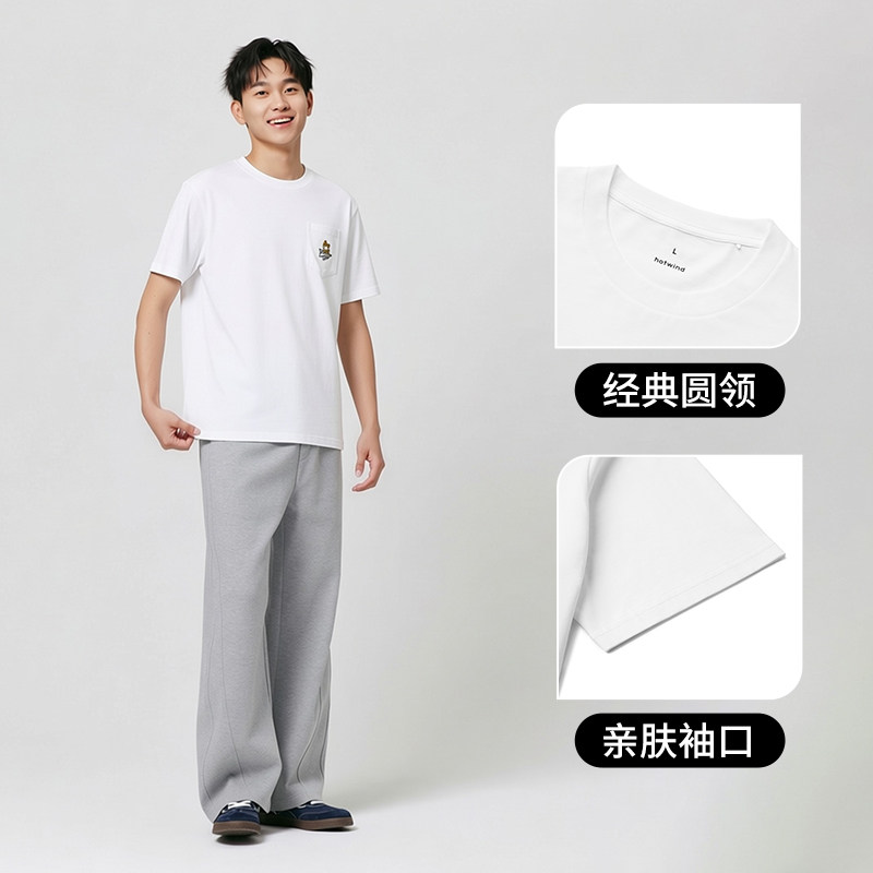 热风2026年夏季新款男士简约口袋宠物短T恤柔软舒适纯棉休闲百搭