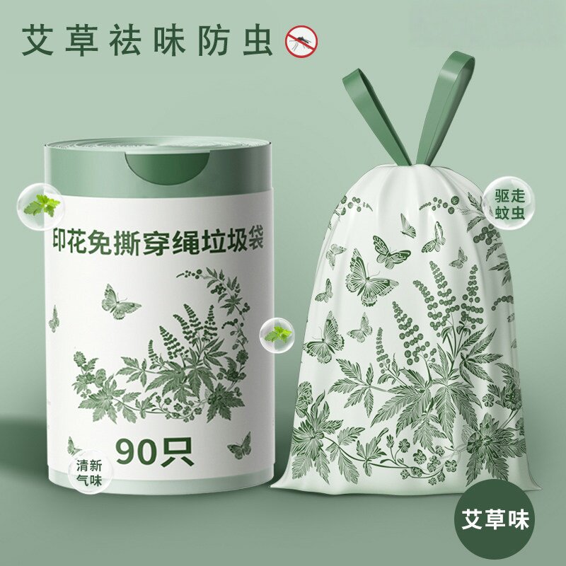 艾草垃圾袋家用加厚手提式免撕抽绳大号厨余祛味塑料袋特厚香味