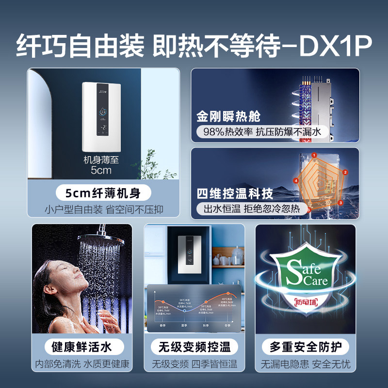 海尔智家统帅即热式电热水器速热神器纤薄恒温家用官方洗澡DX1P白