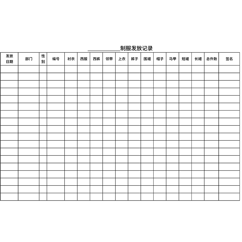 工作制服发放记录本企业公司办公室餐饮店工作服发放登记本登记表