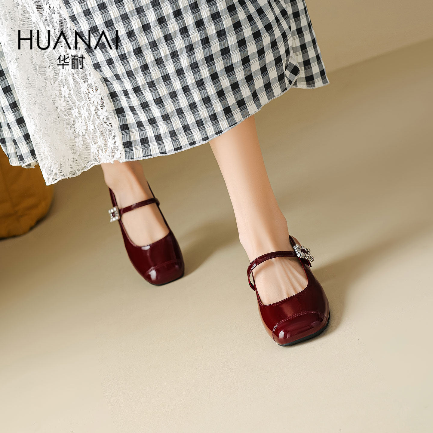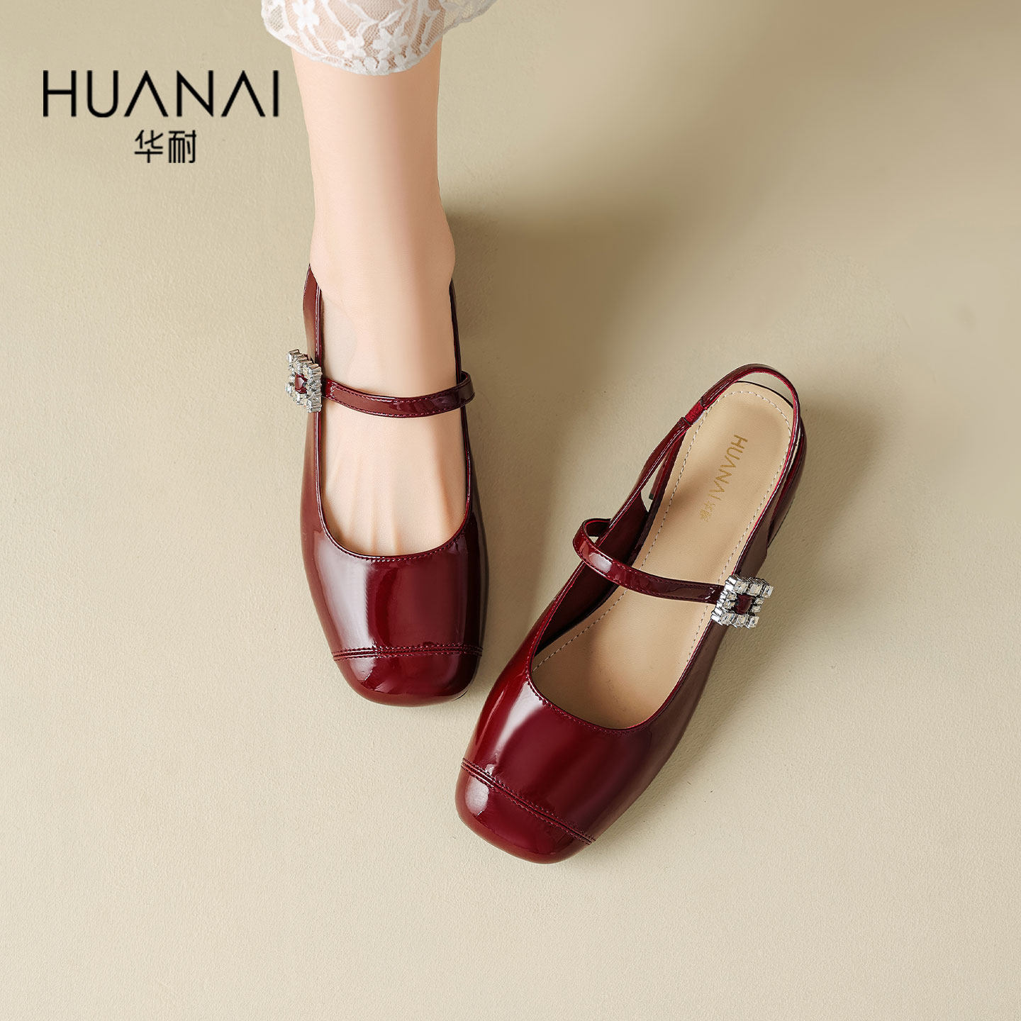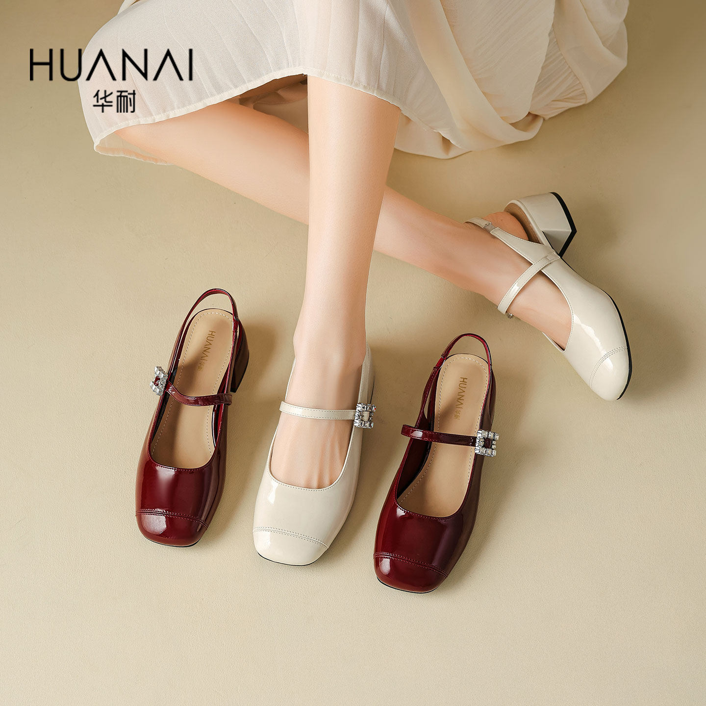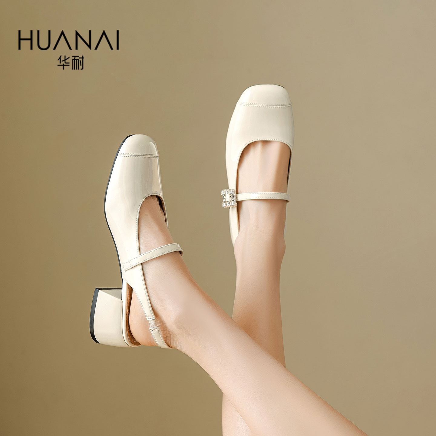 华耐包头时装凉鞋女2026夏季新款外穿配裙子一字带后空玛丽珍凉鞋