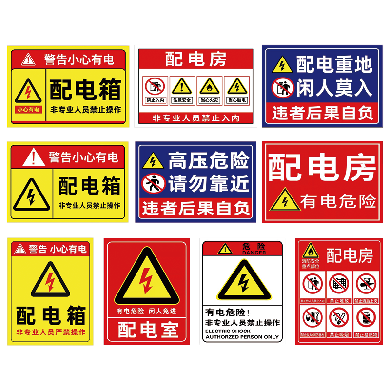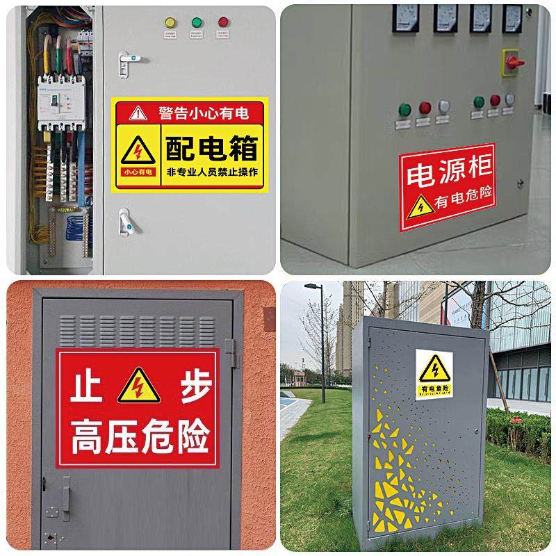 有电危险警示贴配电箱消防用电安全标识牌配电柜房当心触电提示牌车间机械安全警告非专业人员严禁止操作定制
