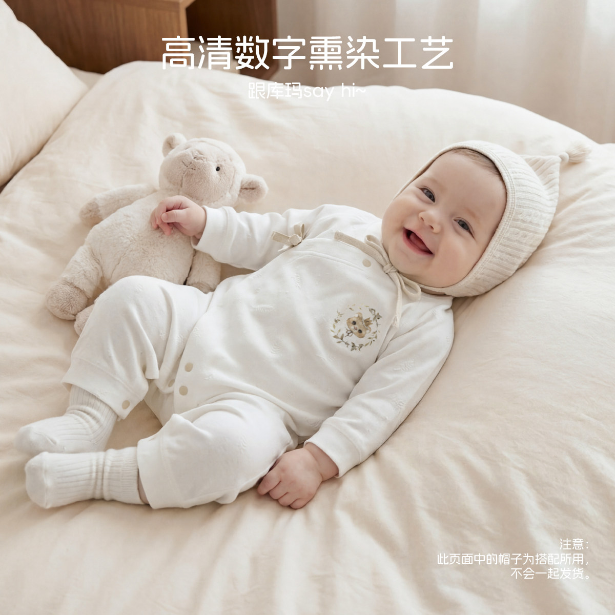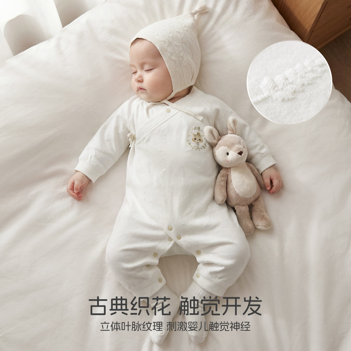 aqpa爱帕新生婴儿衣服莱赛尔弹力透气宝宝连体衣哈衣睡衣小月龄萌