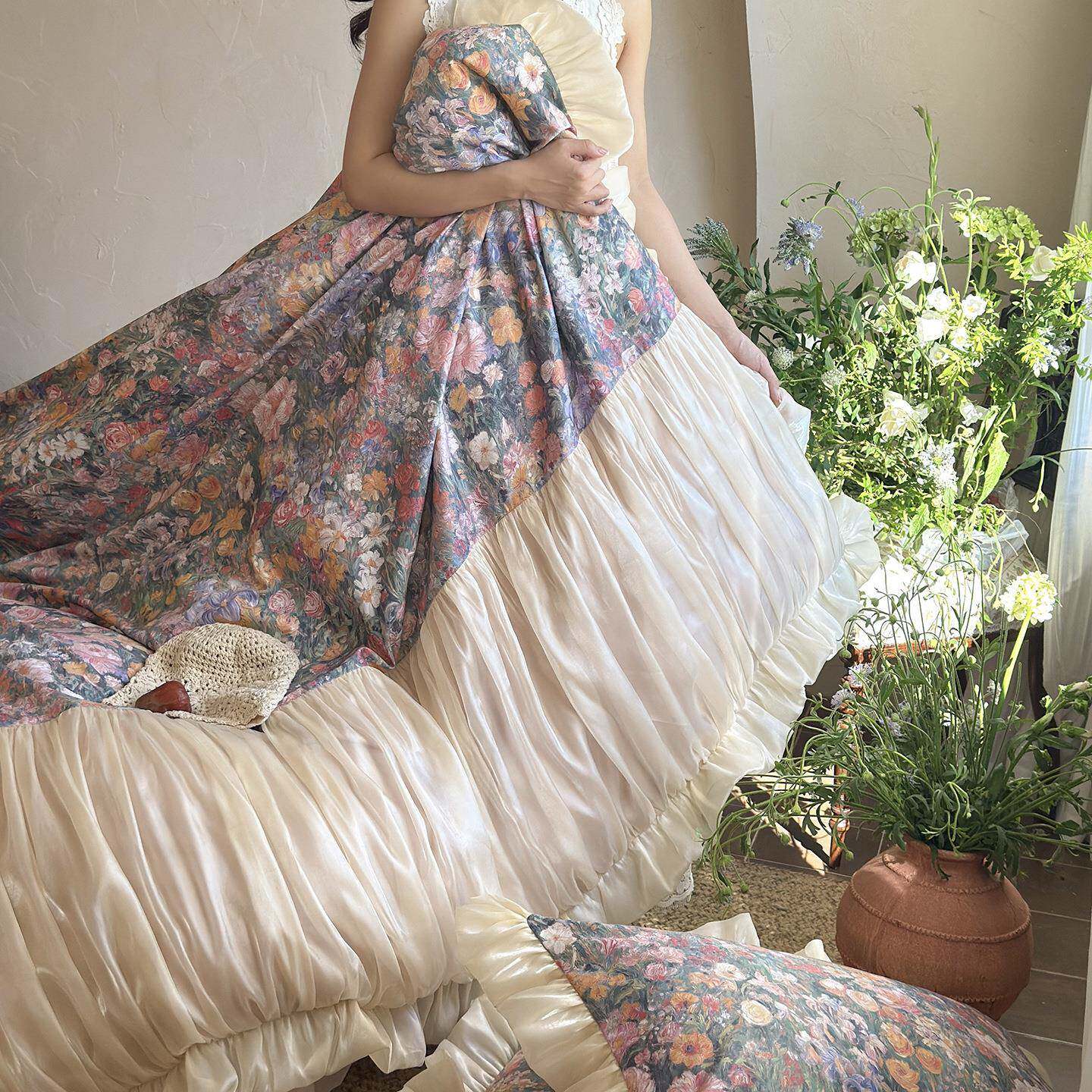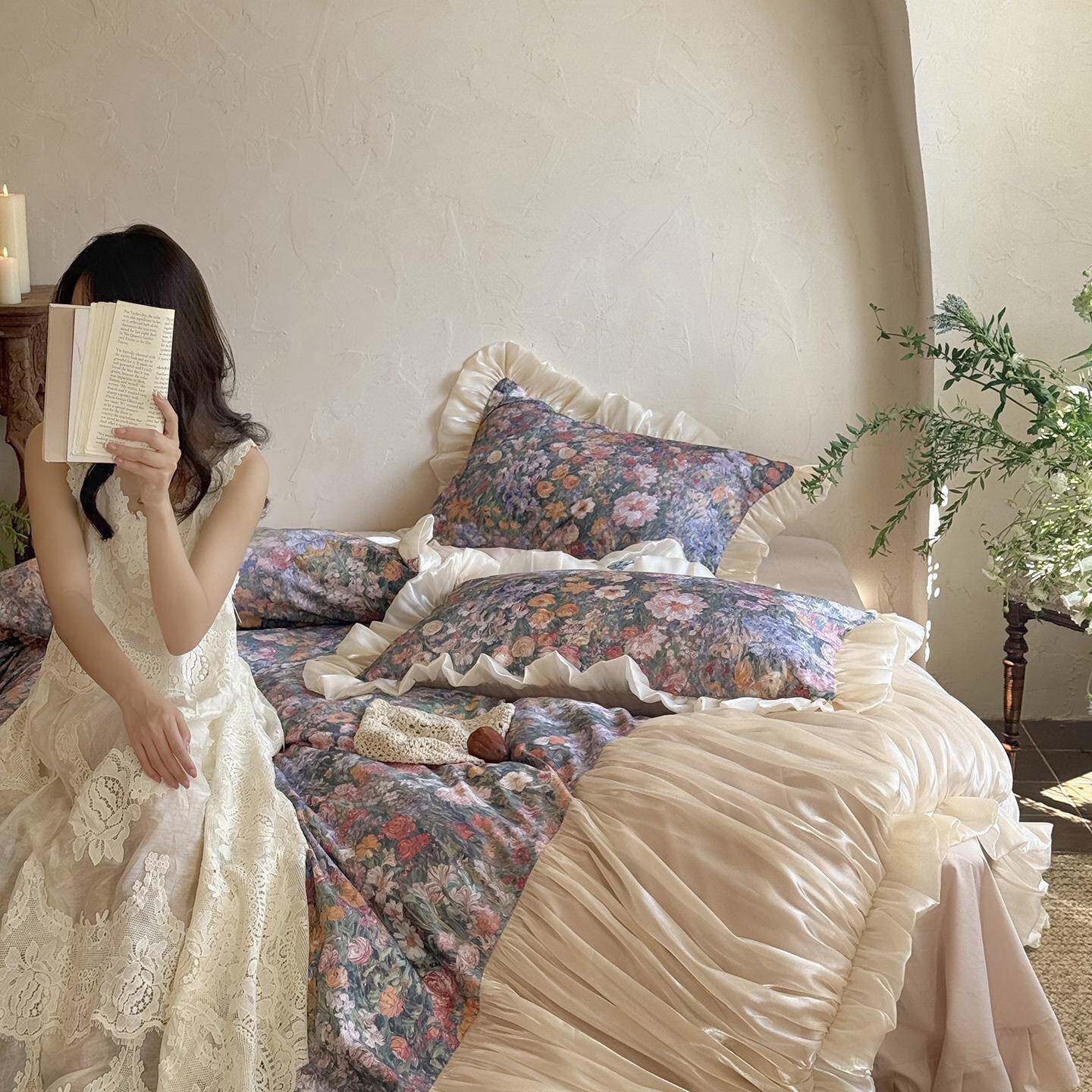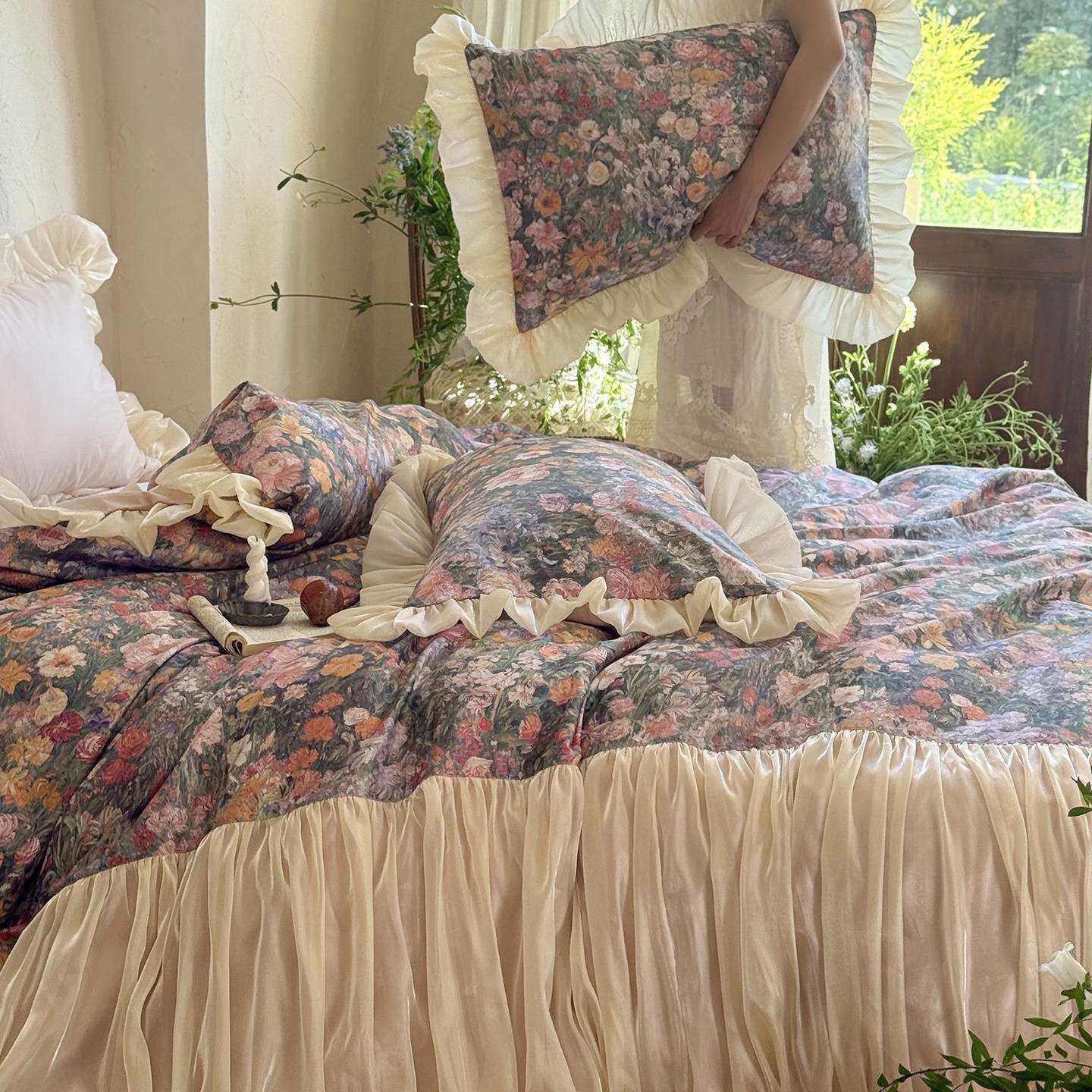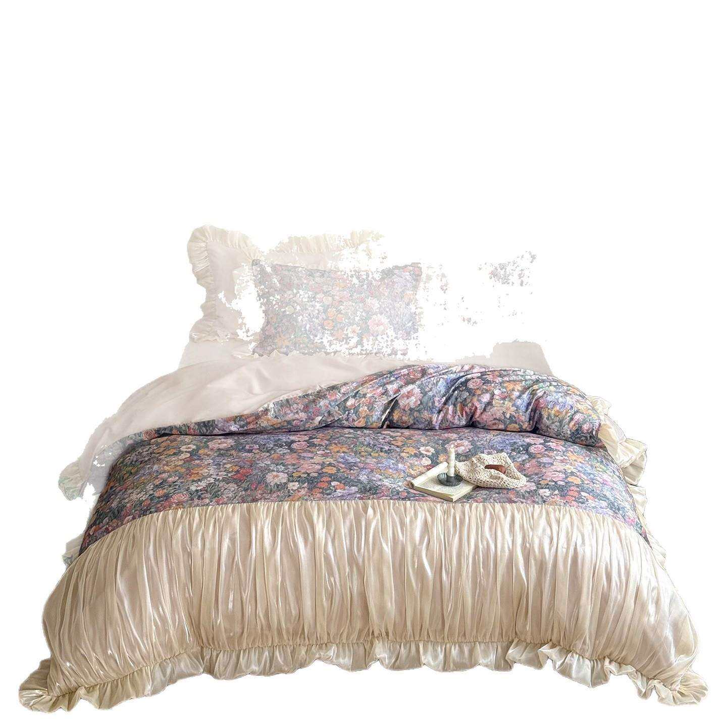 法式复古长绒棉纯棉四件套公主风花边全棉被套床单床裙床上用品