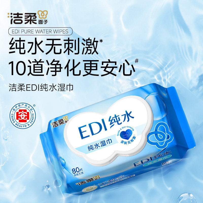 洁柔纯水湿巾婴儿手口湿巾家用实惠大包湿纸巾加大加厚湿巾纸80抽