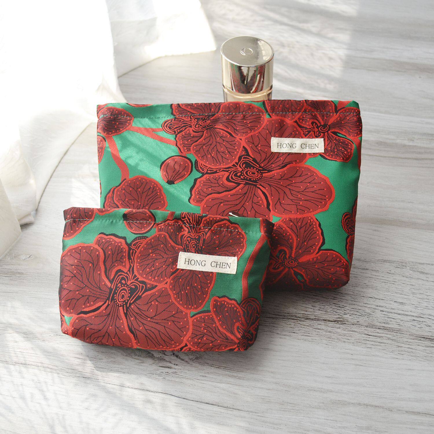 高级感古风花朵化妆包便携大容量收纳袋姨妈巾随身小包双层精致