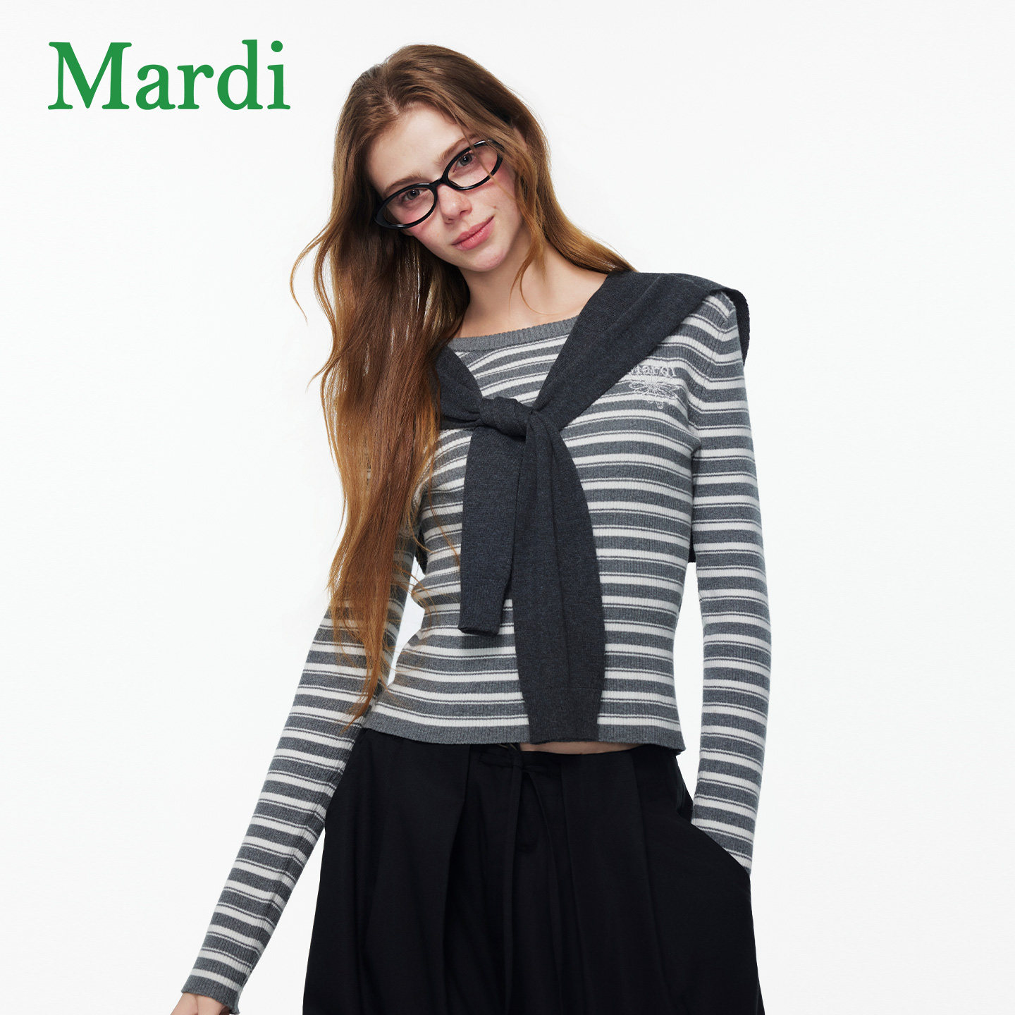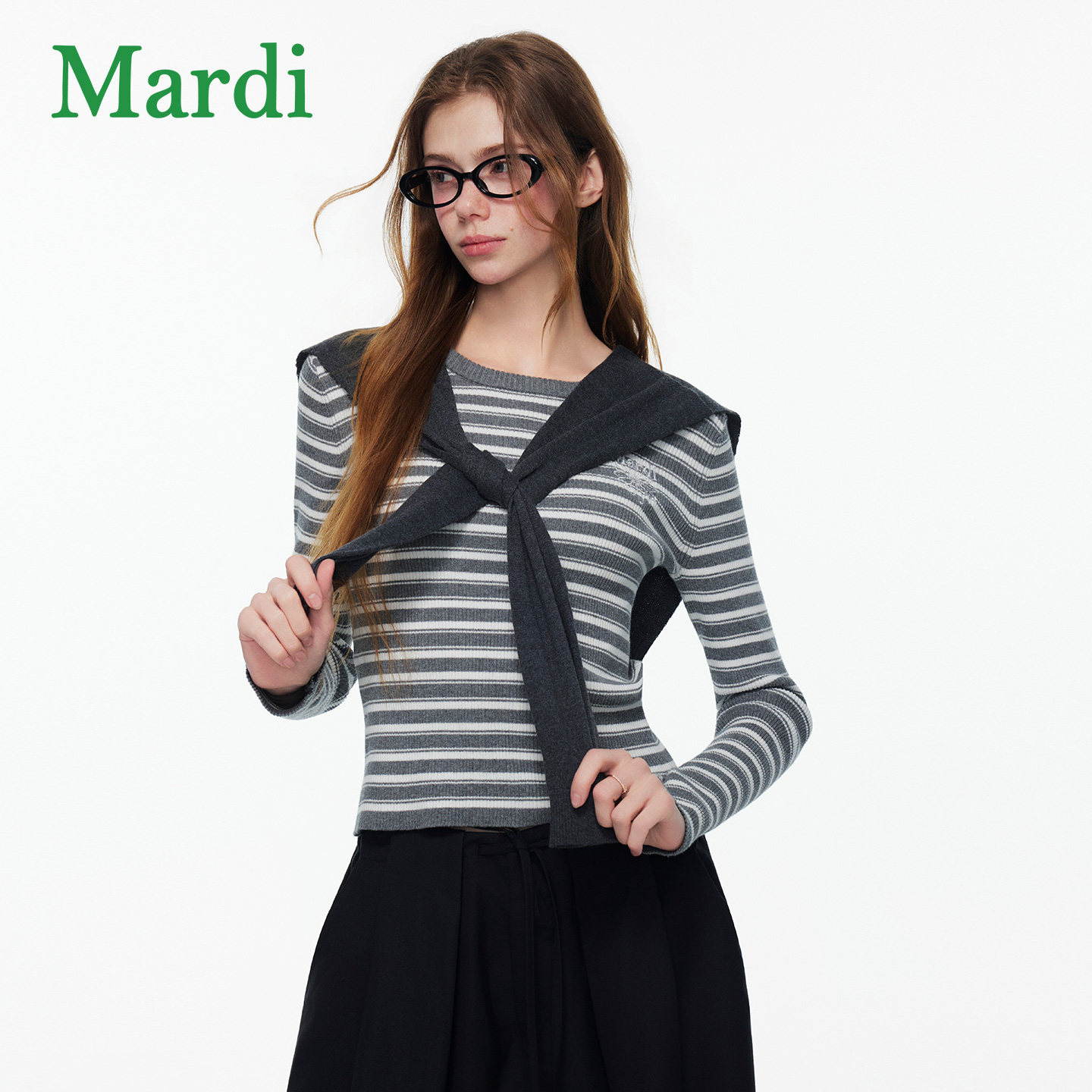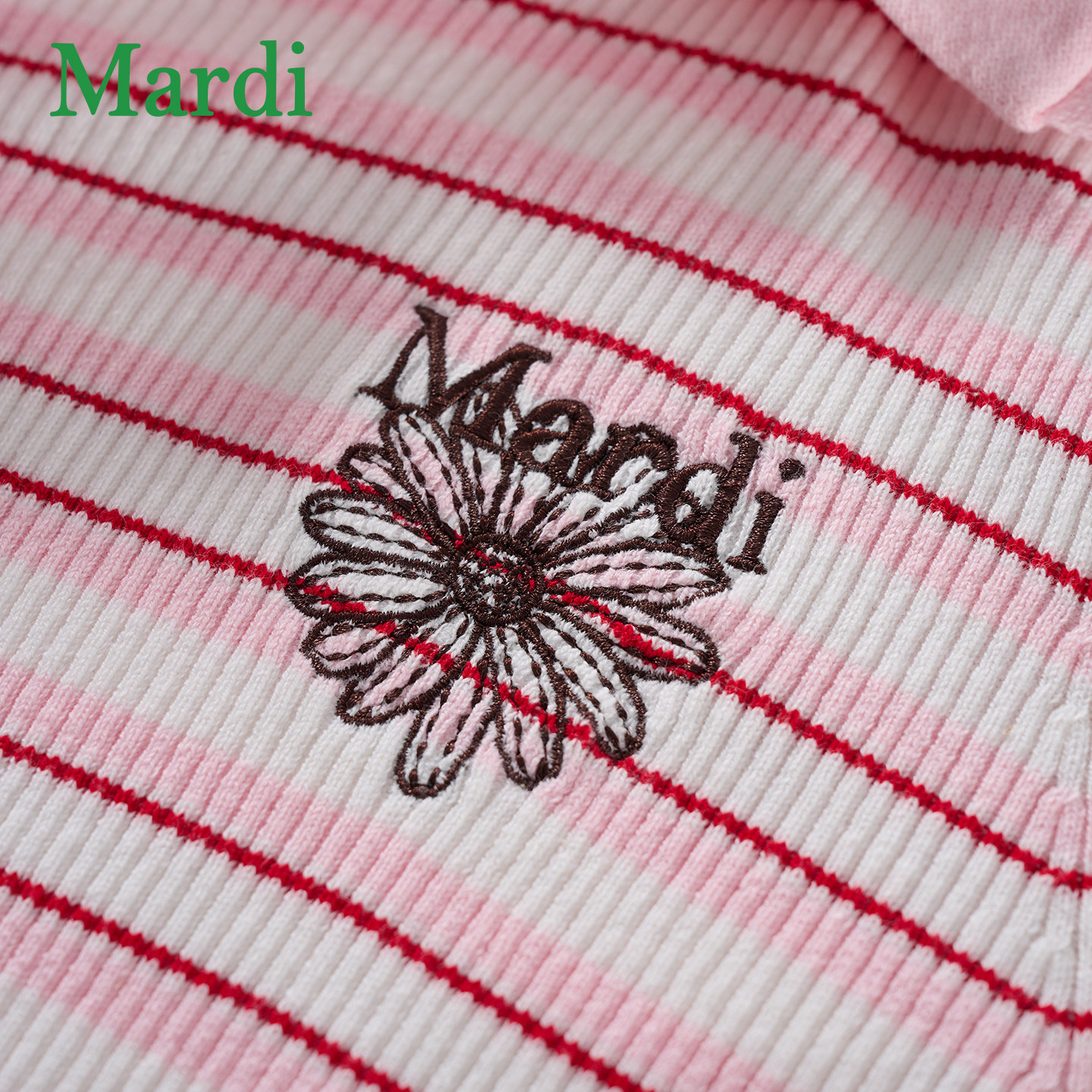 MARDI小雏菊毛衣女休闲风条纹针织衫慵懒风假两件上衣粉色少女
