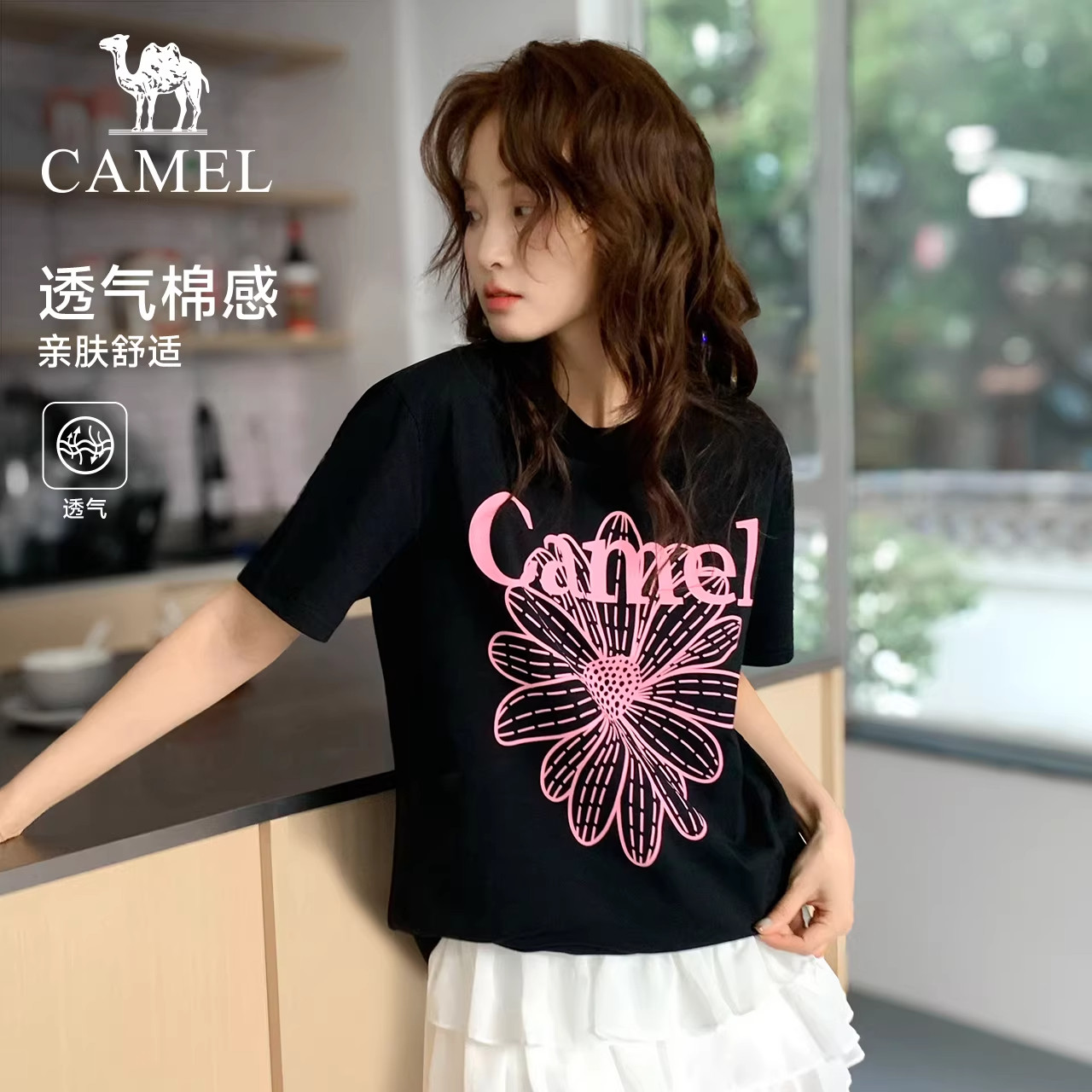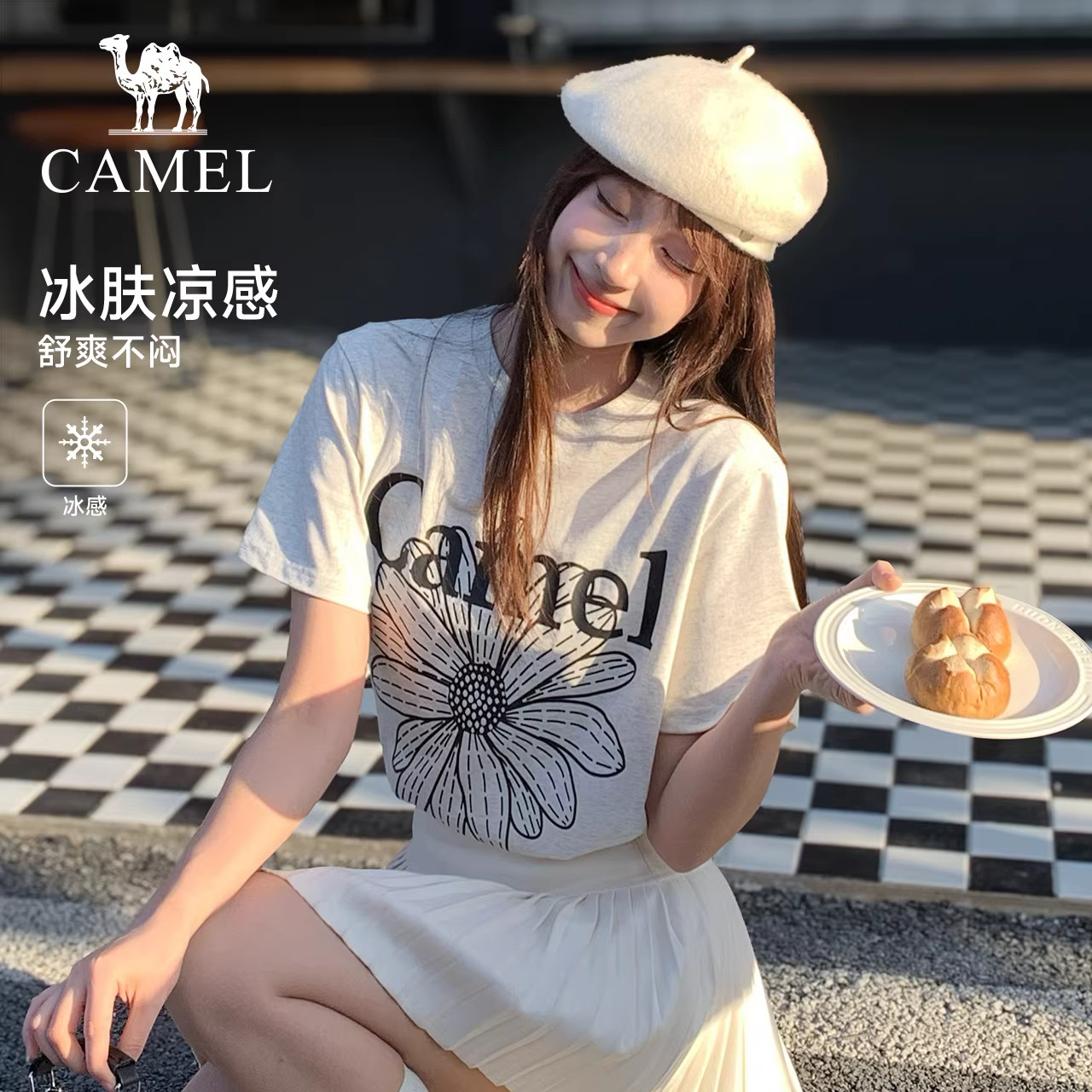 骆驼女装小雏菊T恤2026春夏新款冰皮休闲宽松百搭圆领短袖