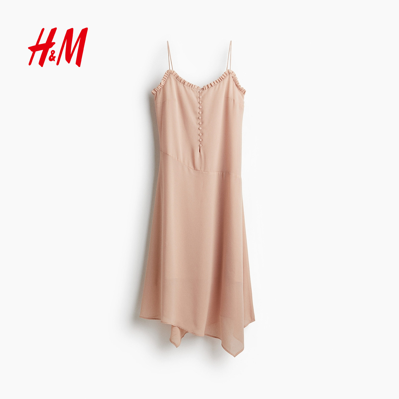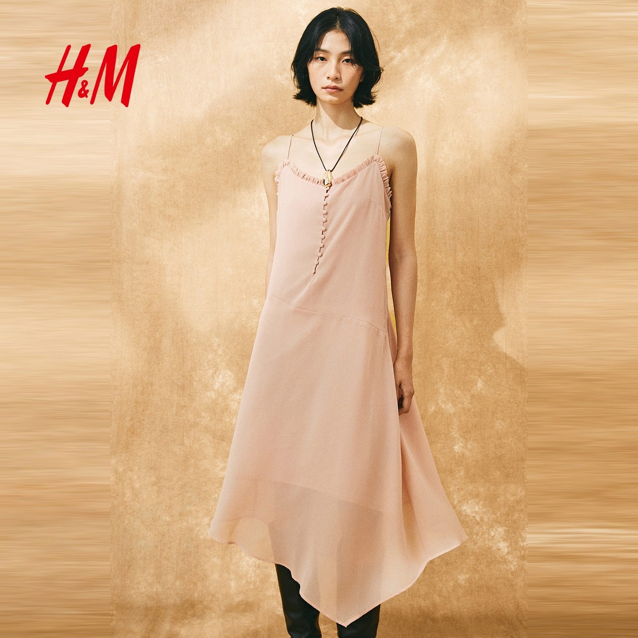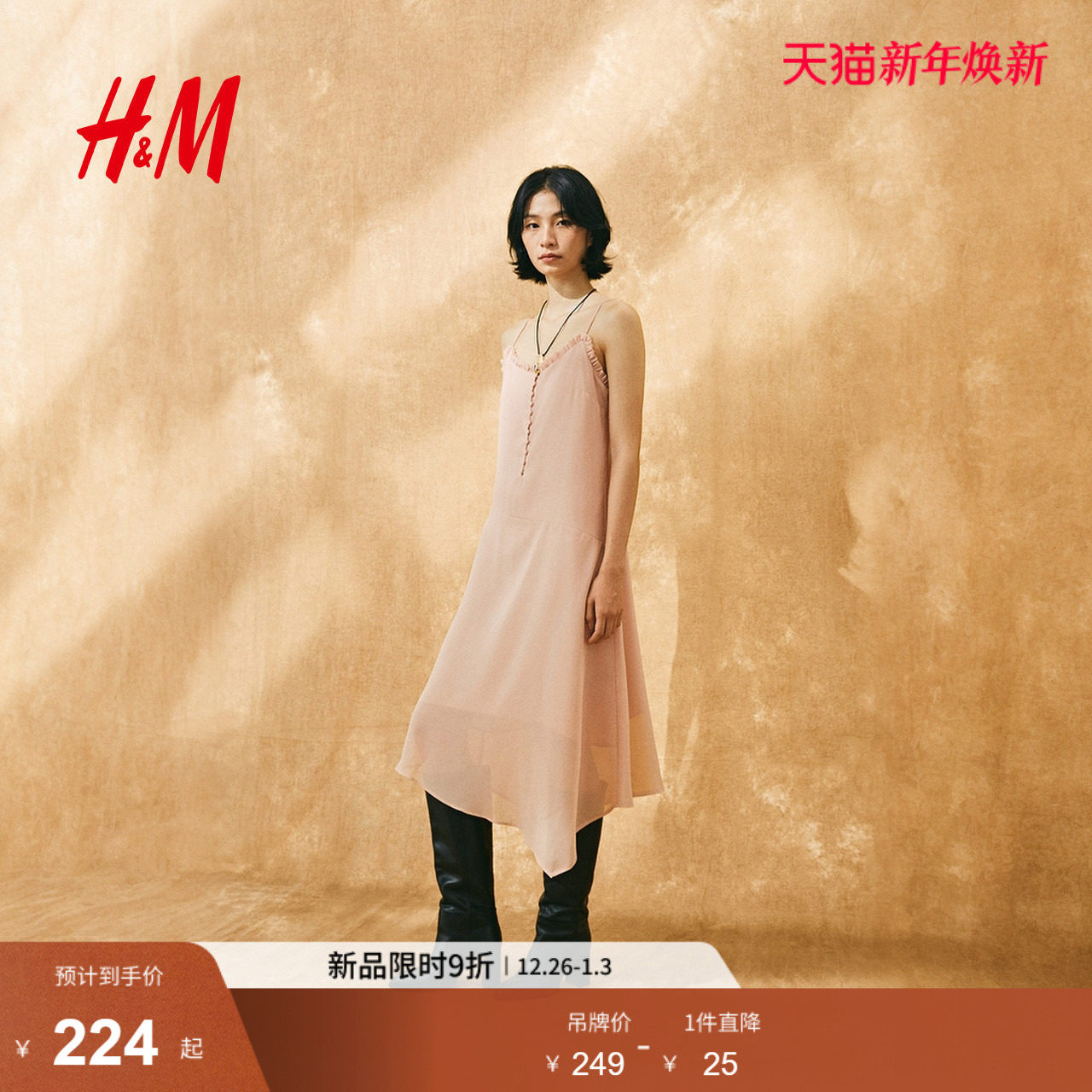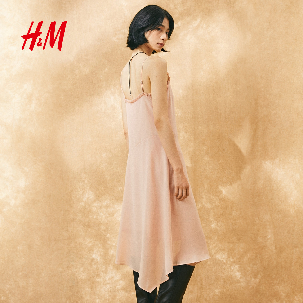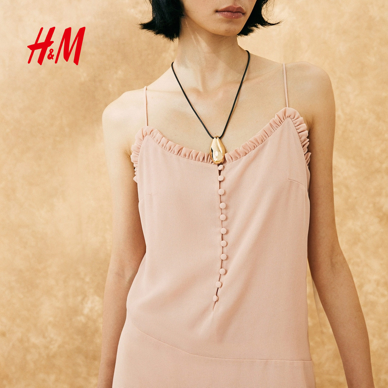 HM女装连衣裙2025年冬季新款甜心领褶边喇叭形吊带连衣裙1311541