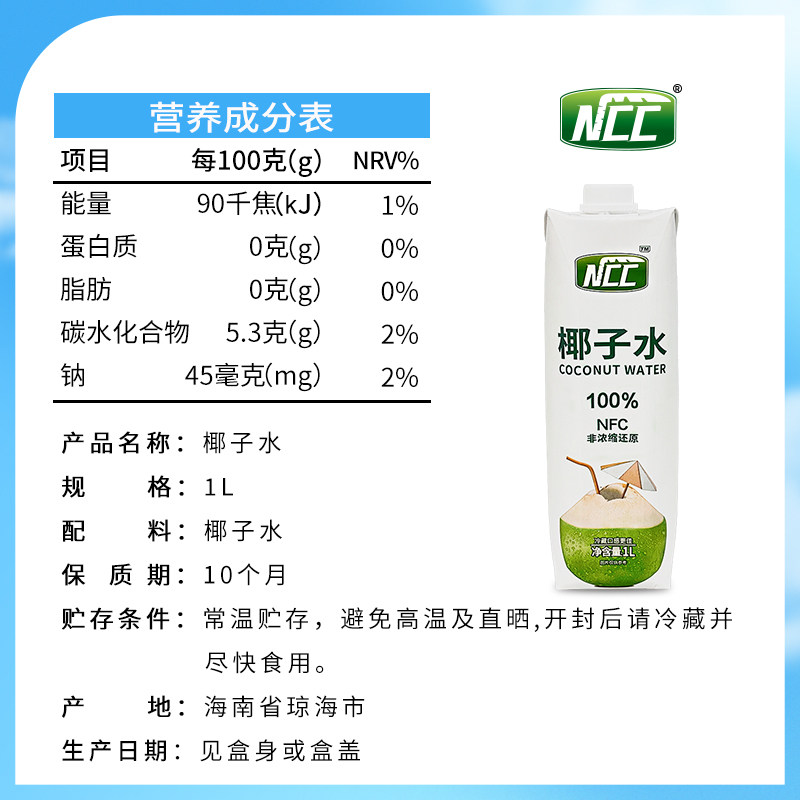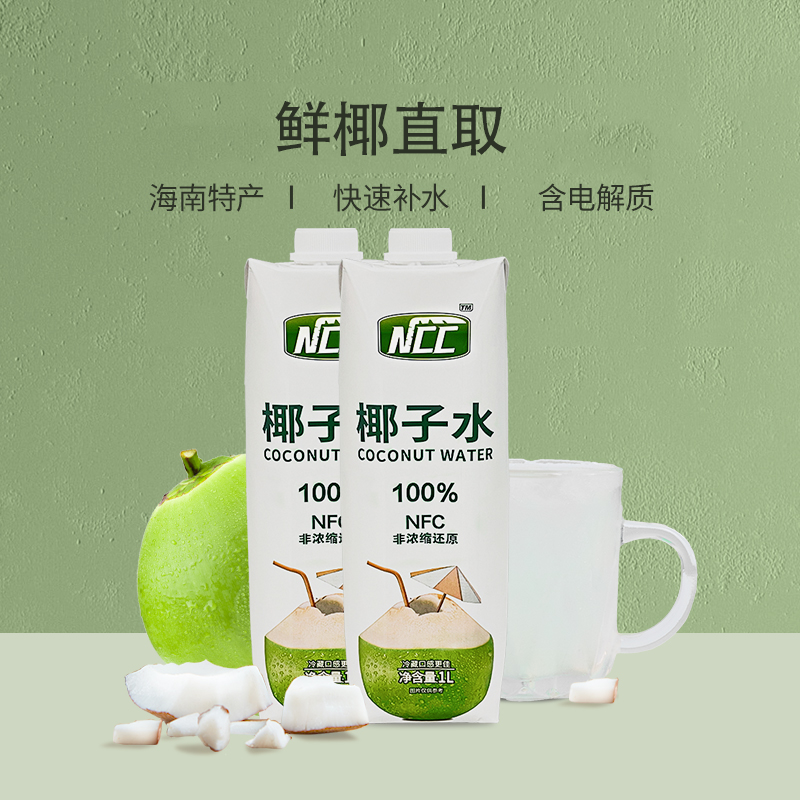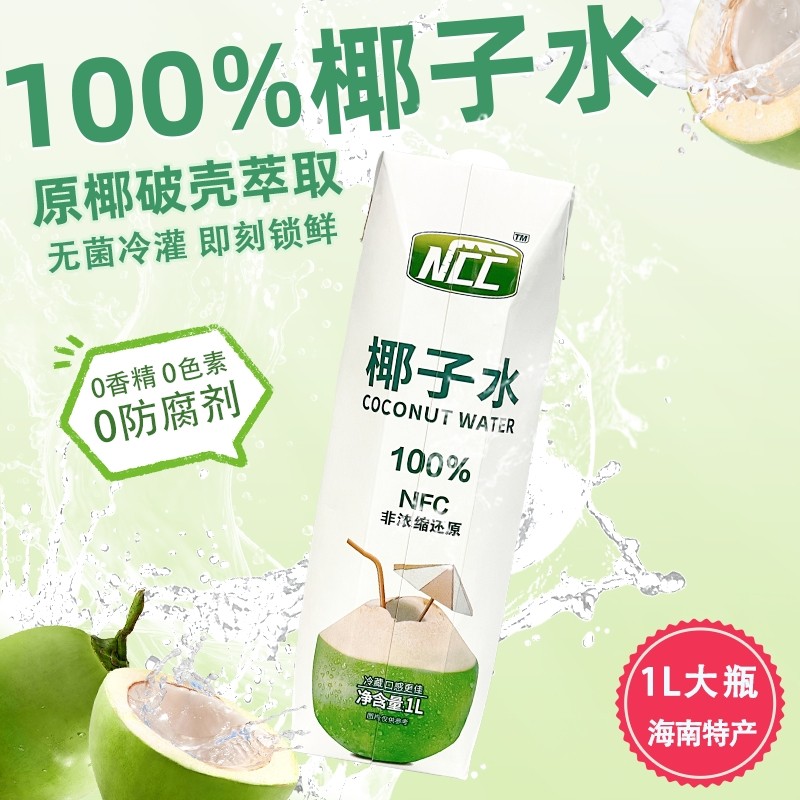 海南NCC椰子水1L大瓶100%椰子水椰汁NFC电解质水海南特产饮料果汁
