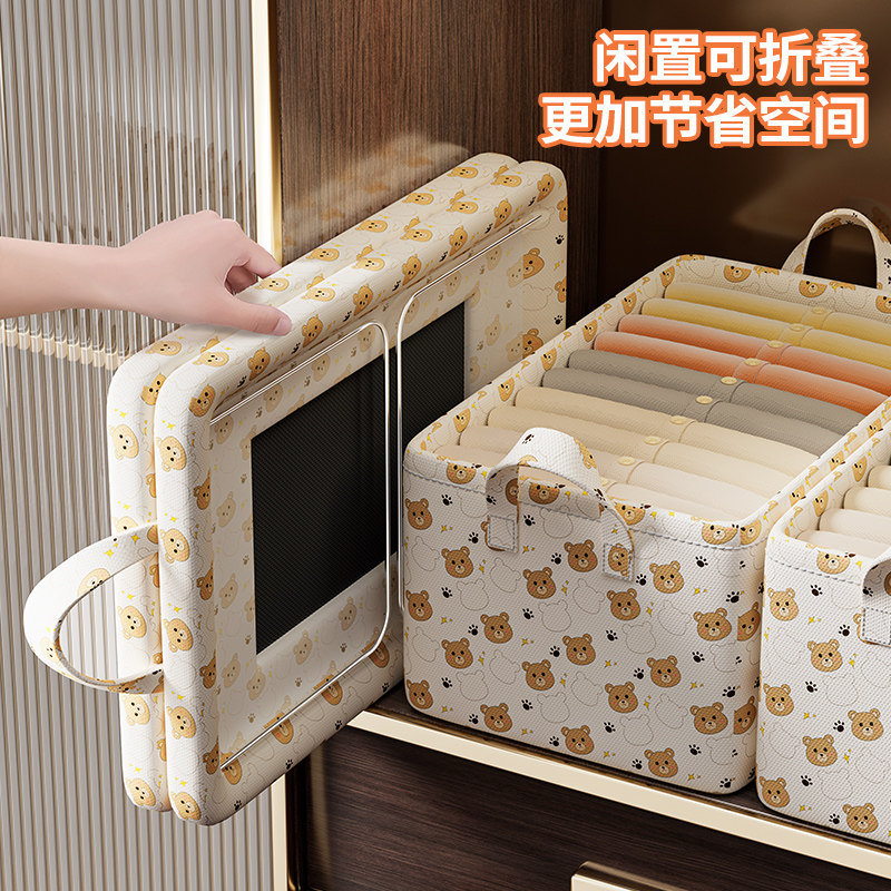 拍1发4衣服收纳筐神器布艺装衣物衣柜分层收纳箱家用框裤子整理盒