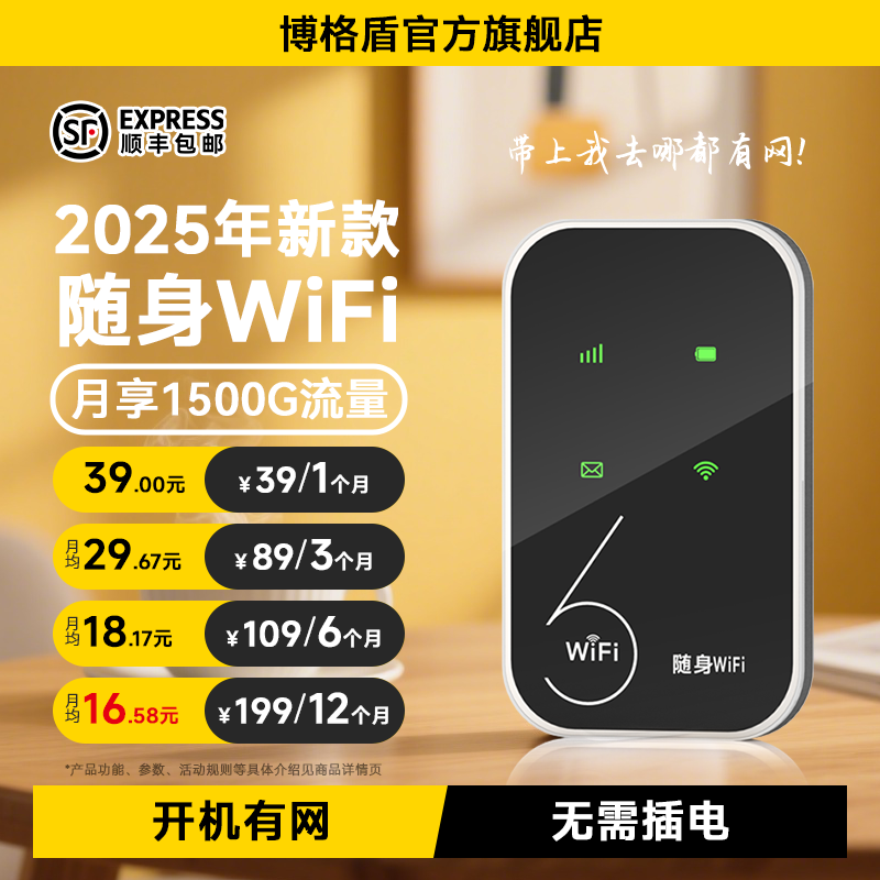 博格盾随身WiFi6移动全国通用流量4G无线上网卡便携式路由器网络设备学生宿舍热点手机平板电脑户外直播新款