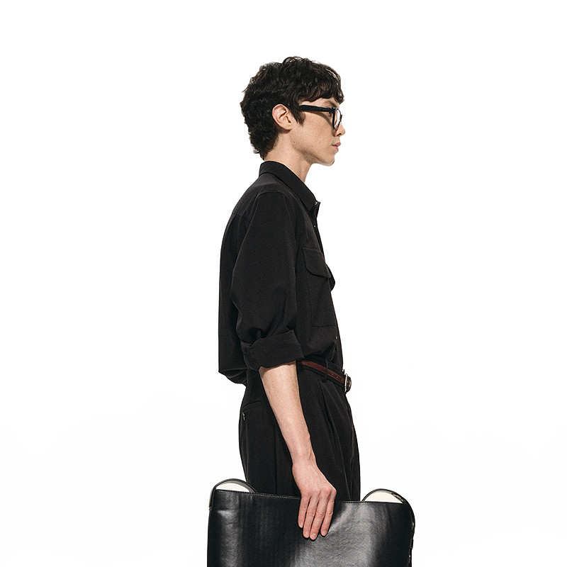 [黑支线]速写男装春秋新款男士衬衫宽松长袖衬衣优雅简约通勤