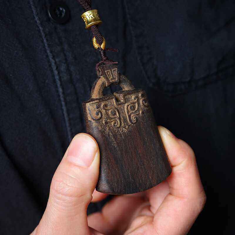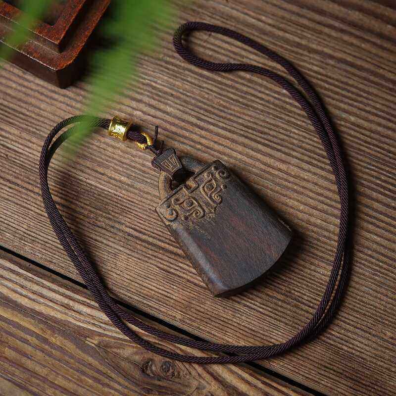 沉香木雕刻平安锁项链吊坠工艺品车挂件男女饰品沉香无事佛牌脖挂
