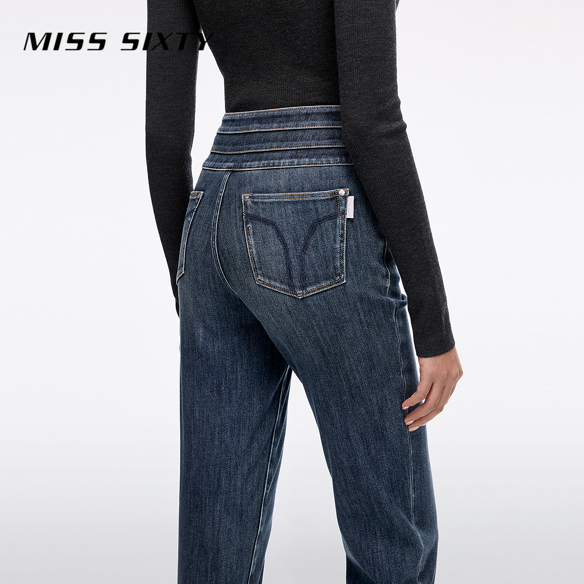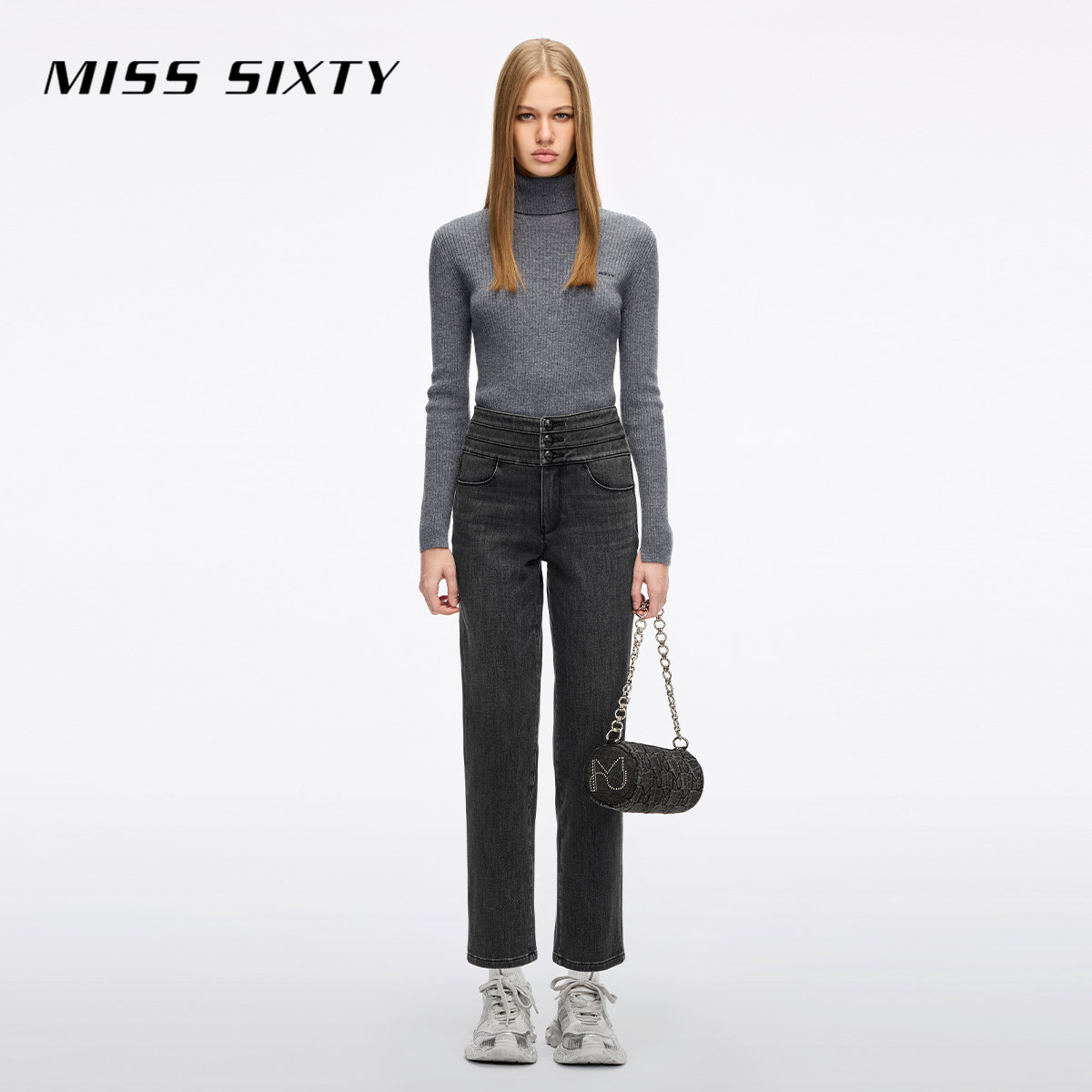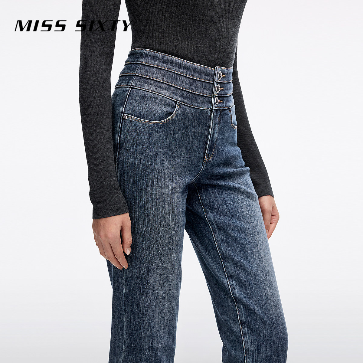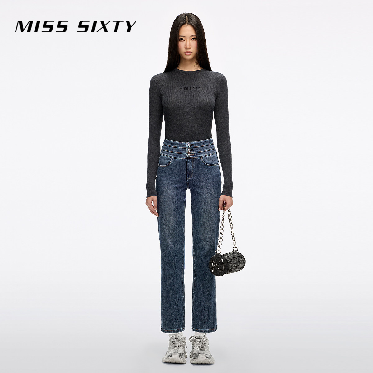 【保暖含羊绒】Miss Sixty25冬新款牛仔裤女复古高腰直筒裤