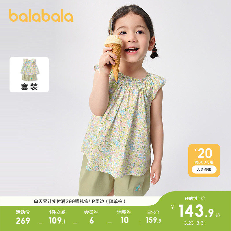 巴拉巴拉女童装短袖套装碎花衬衫两件套2026夏装休闲时尚百搭洋气