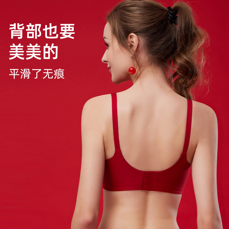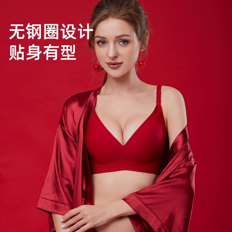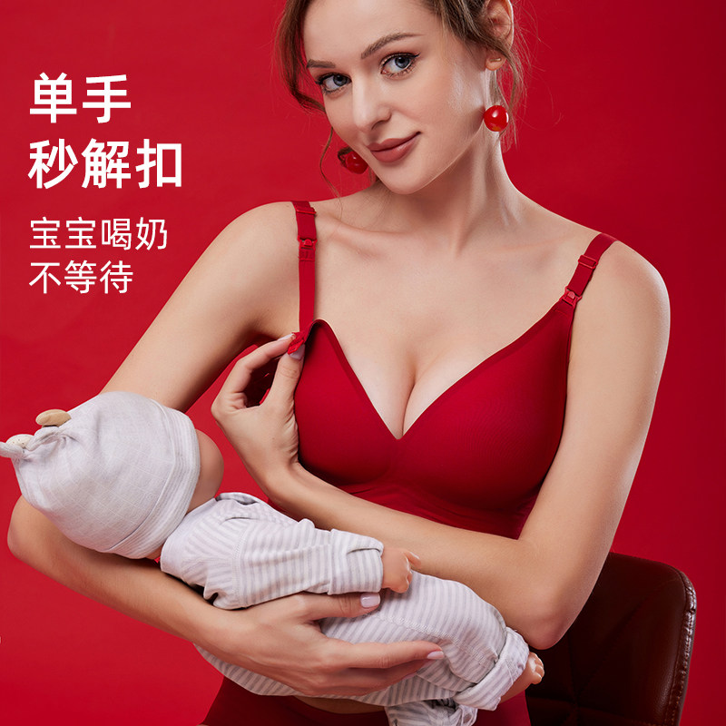 婧麒红色哺乳内衣套装新娘孕妇无钢圈舒适聚拢防下垂怀孕喂奶文胸