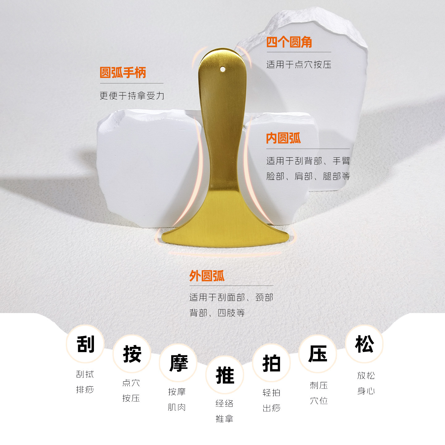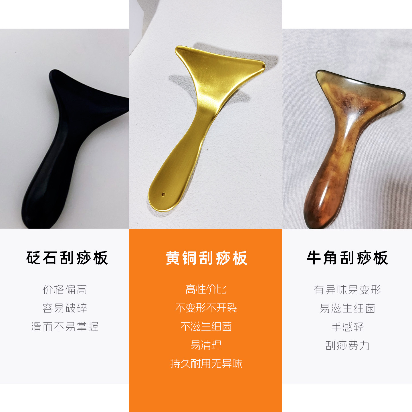 铜砭筋膜刀黄铜升阳铲刮痧板纯铜经络背部按摩面部脸部穴位牛角