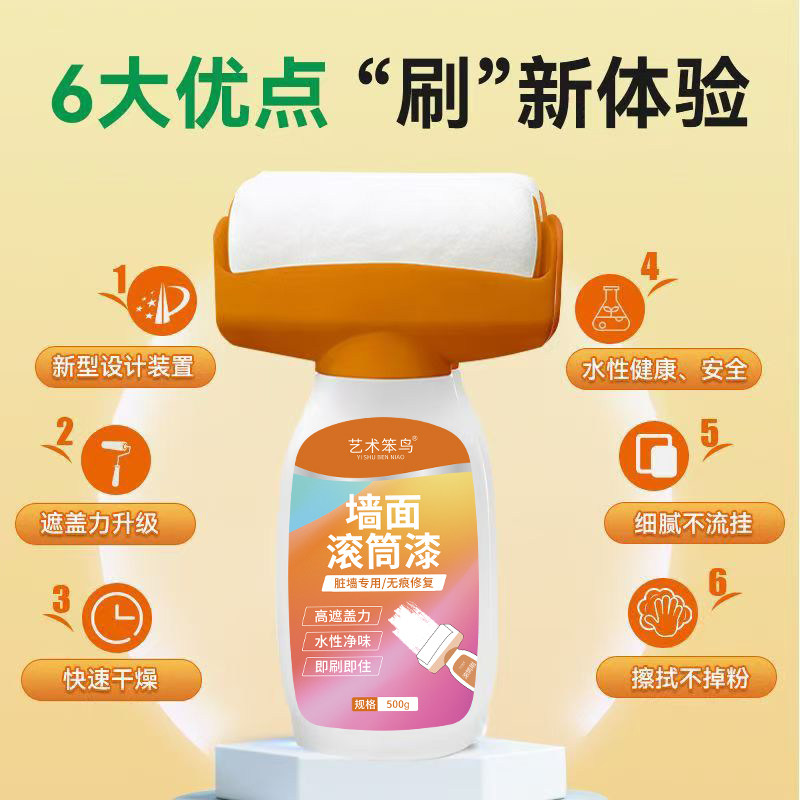 家用墙面滚筒漆修复神器漆防水涂料速干室内墙面去污自刷乳胶漆