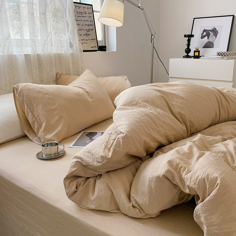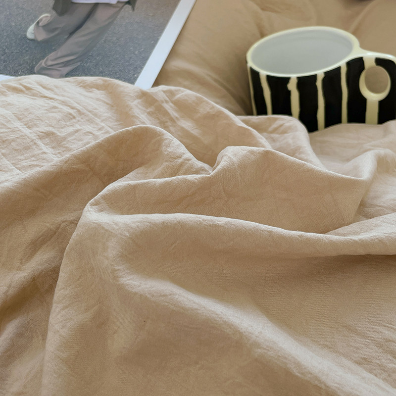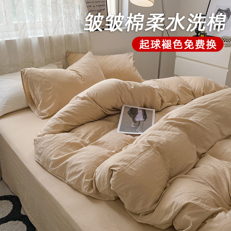 褶皱水洗棉床单四件套全棉纯棉宿舍床上用品单人三件套床笠款被套