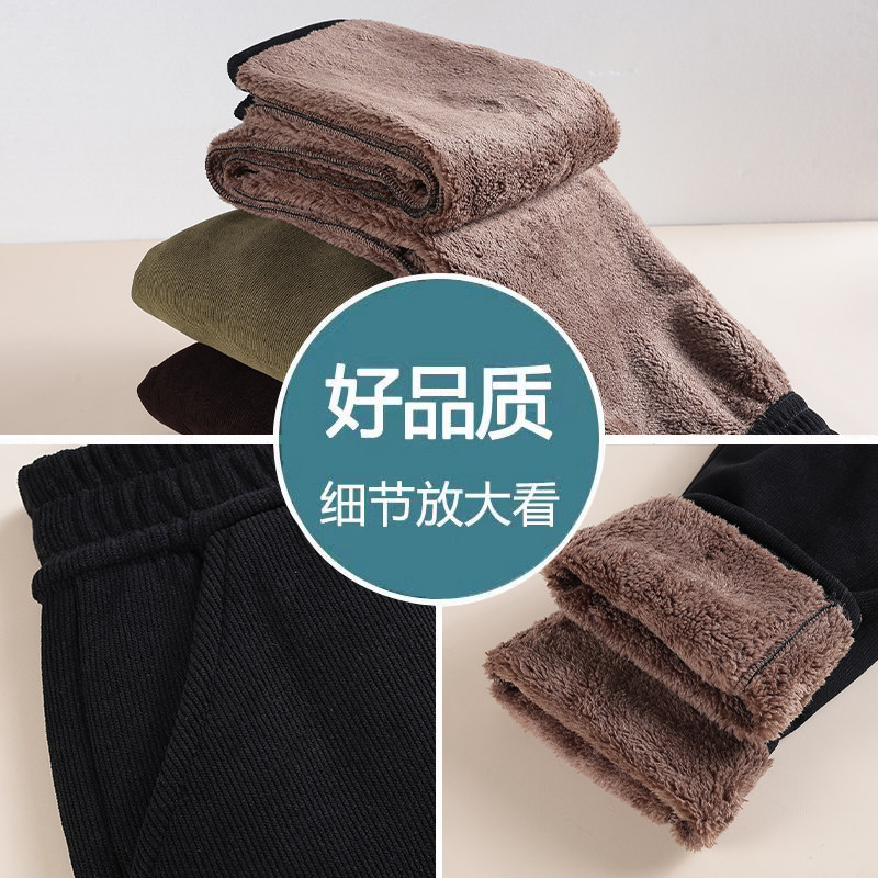 冬季加绒加厚雪尼尔中年妈妈裤高腰弹力外穿灯芯绒保暖休闲直筒裤