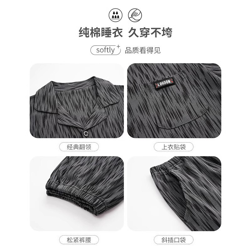 浪莎2025年新款睡衣男士夏季纯棉短袖长裤家居服男款夏天夏款套装