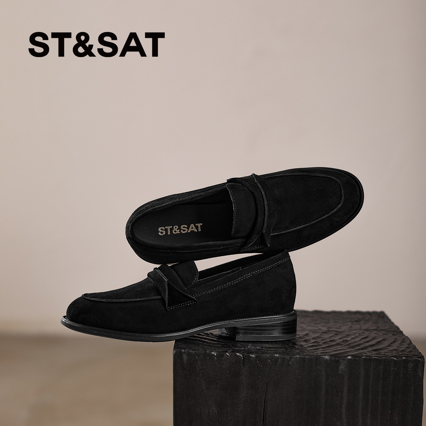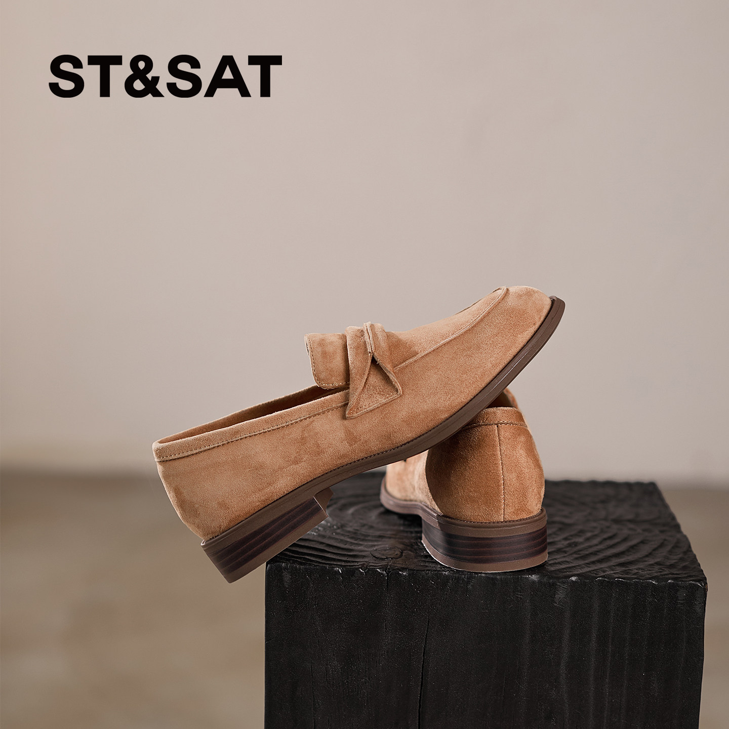 星期六乐福鞋子女2026新款高级感反绒皮圆头平底舒适百搭豆豆鞋春