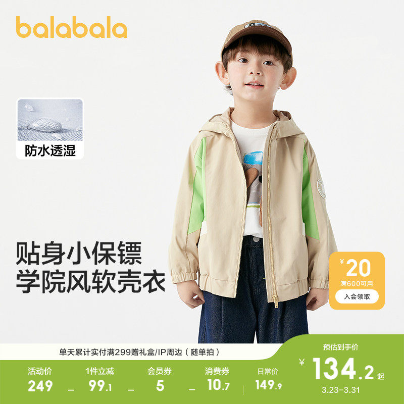 巴拉巴拉童装儿童外套男童上衣春秋装衣服软壳衣宽松连帽百搭小童