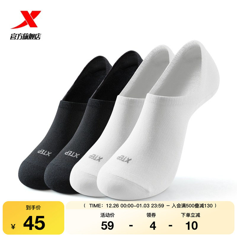 3双装特步休闲袜男袜子2025秋季官方女袜透气跑步袜子船袜短袜