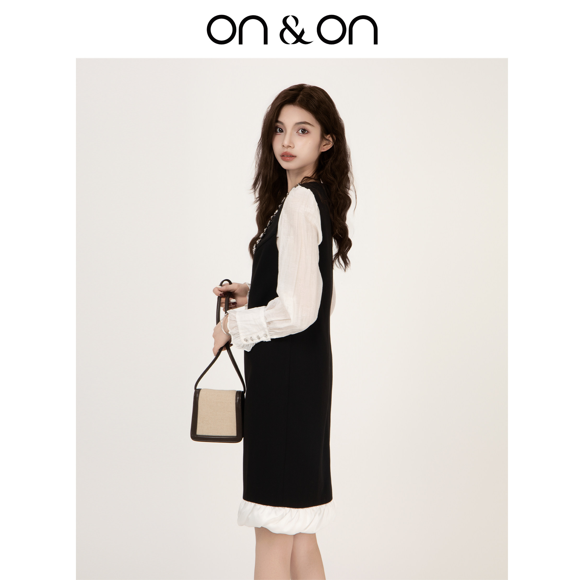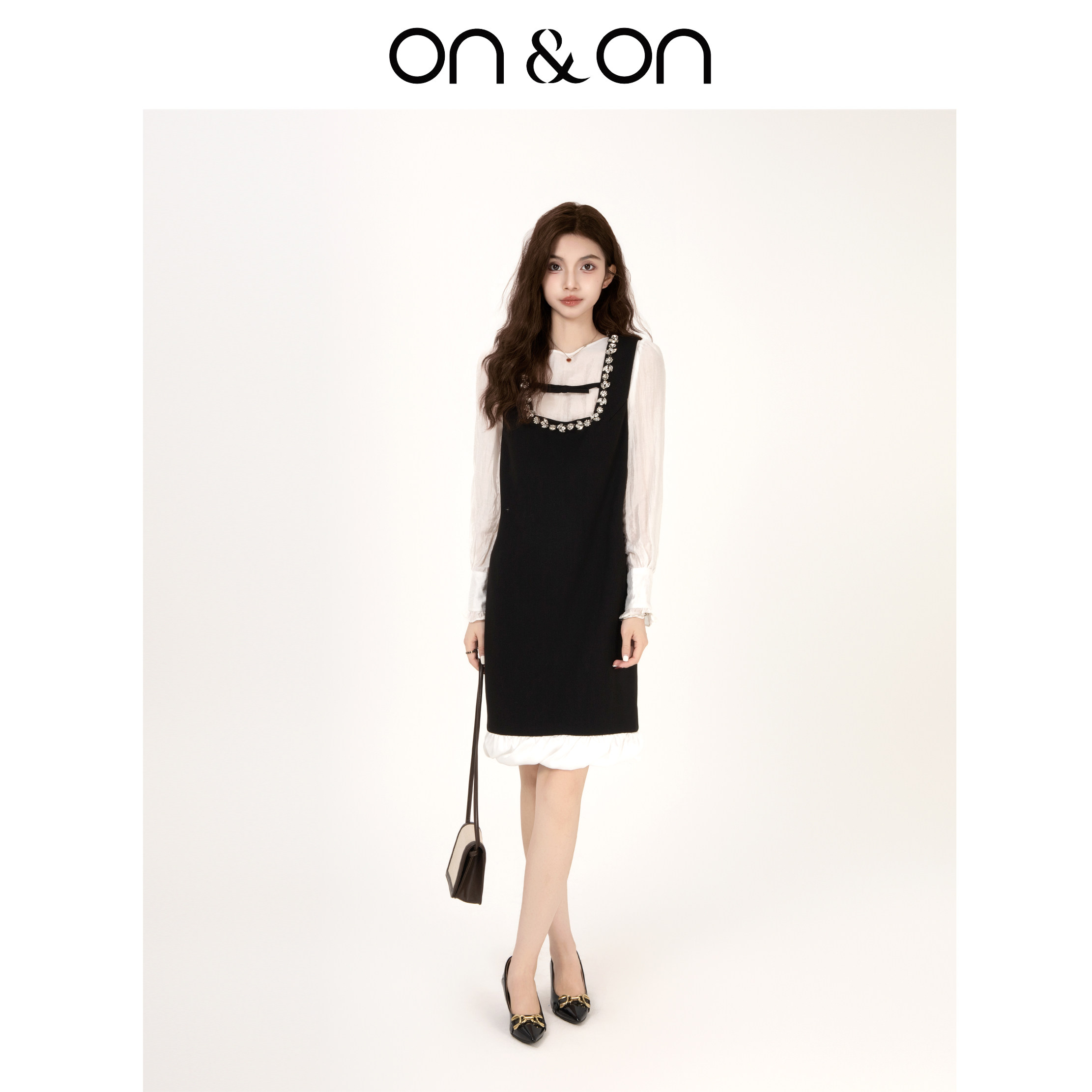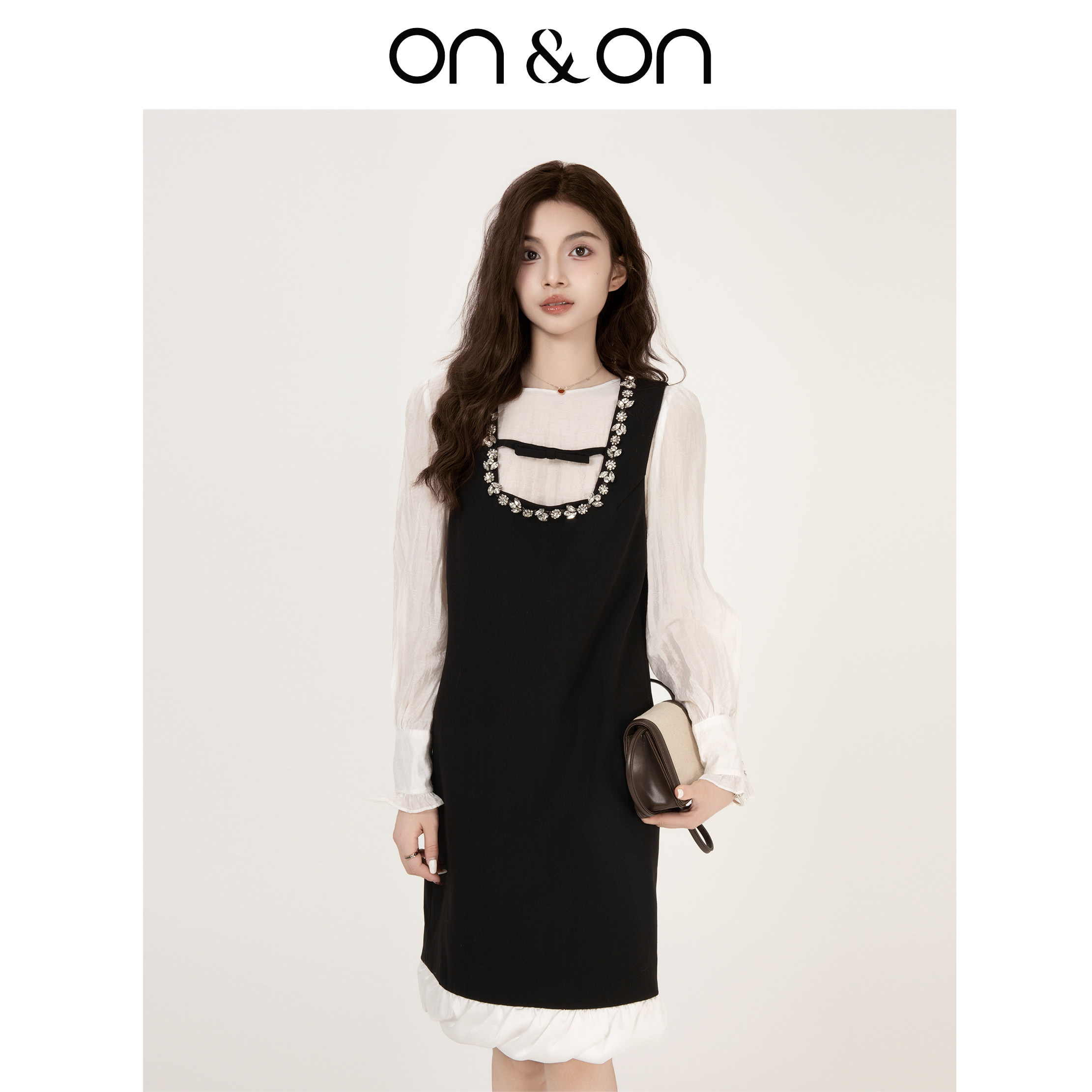 ON&ON/安乃安2026春季新款法式重工闪光钉珠水钻小个子穿背心裙