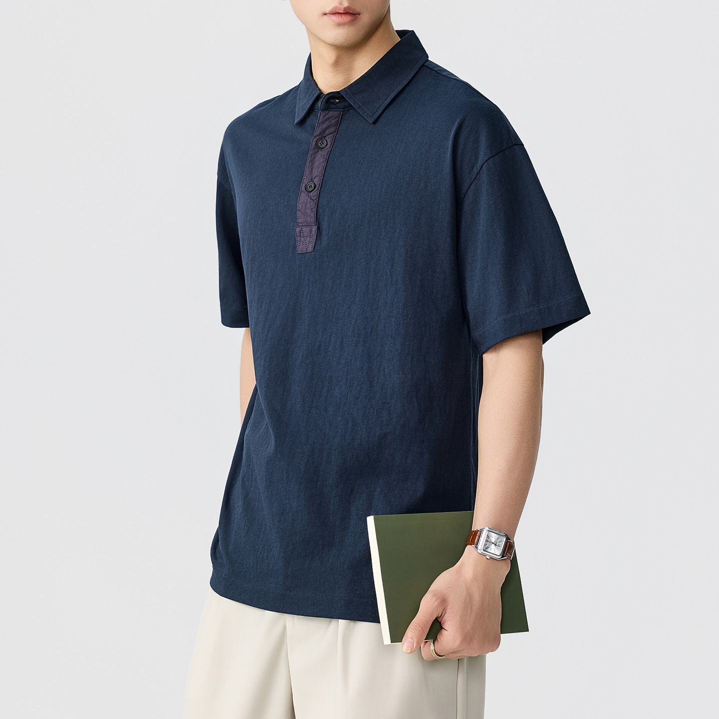 撞色polo领男士短袖t恤商务休闲衬衫男款2026新款夏季成熟体恤男