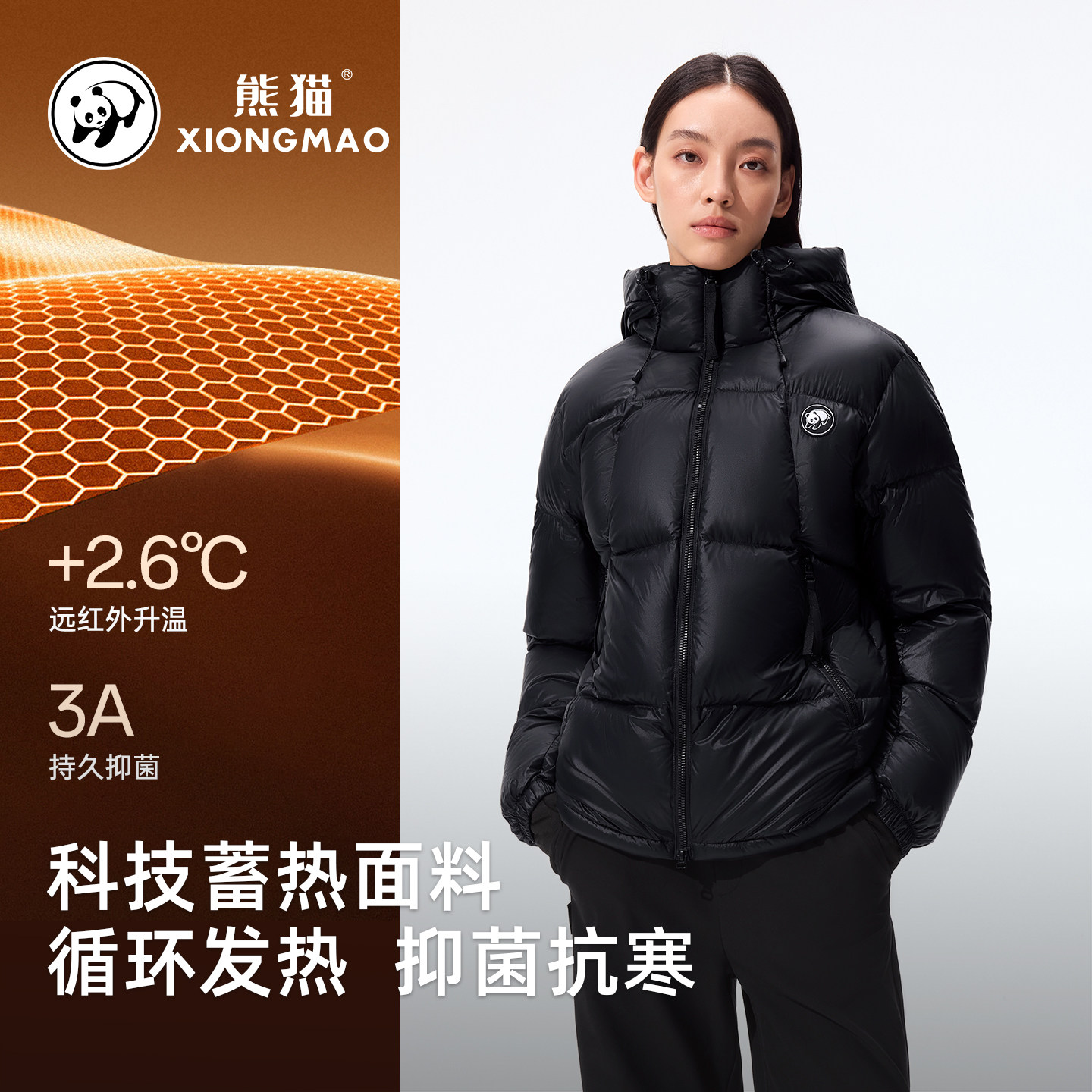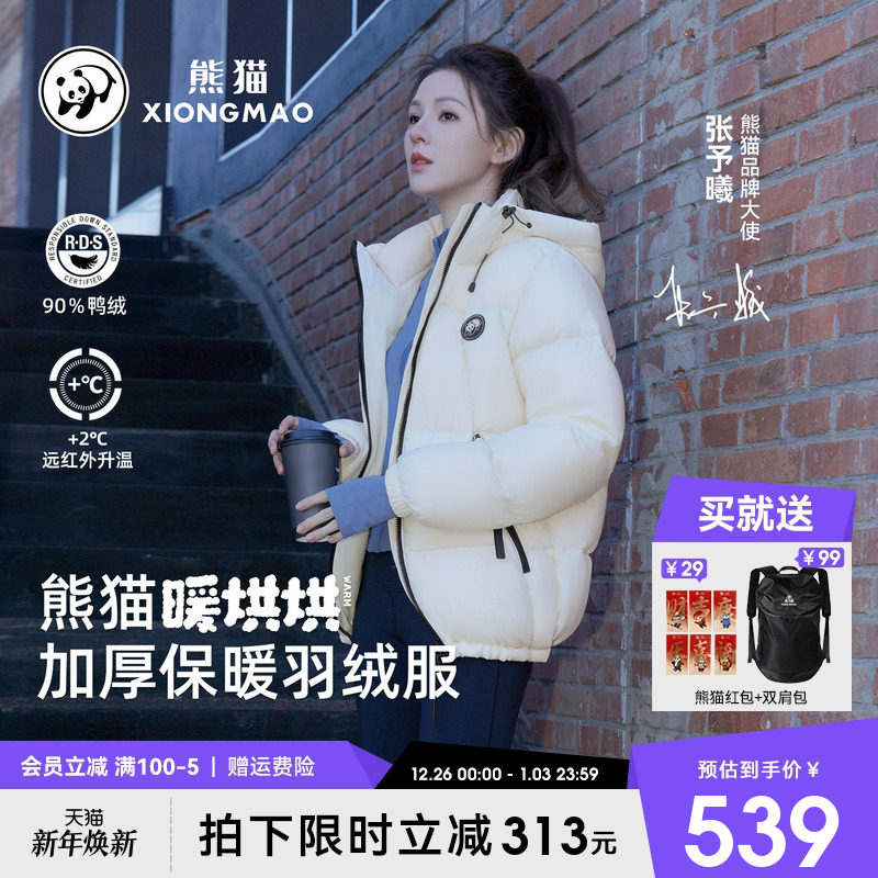 张予曦明星同款暖烘烘熊猫90鸭绒羽绒服冬女2025款蓄热保温面包服
