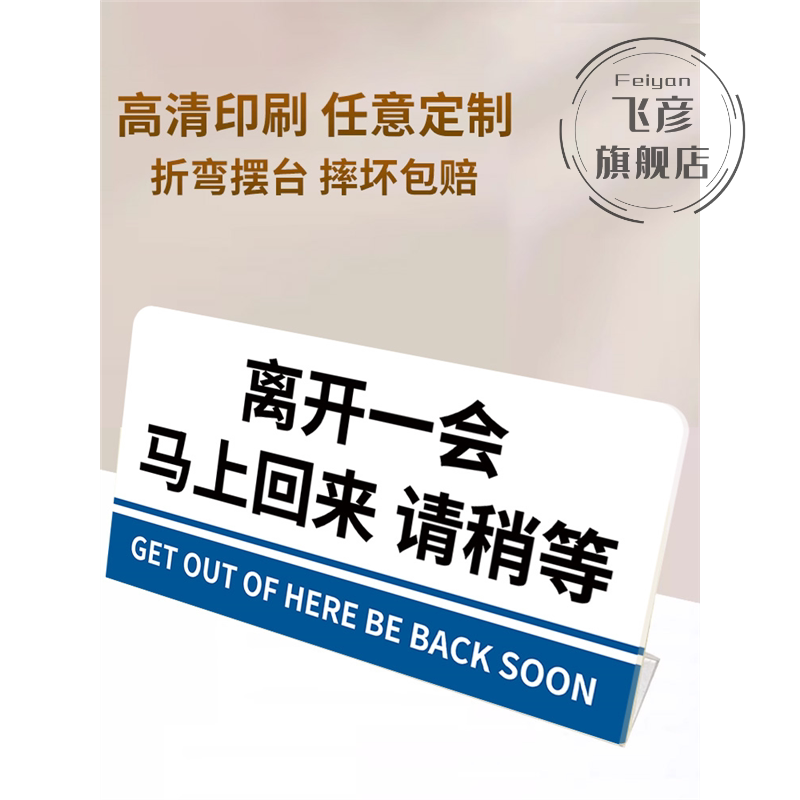 离开一会儿马上回来立牌桌面告示牌临时有事离开请稍等马上回来稍等片刻窗口温馨提示牌亚克力桌牌展示牌3C