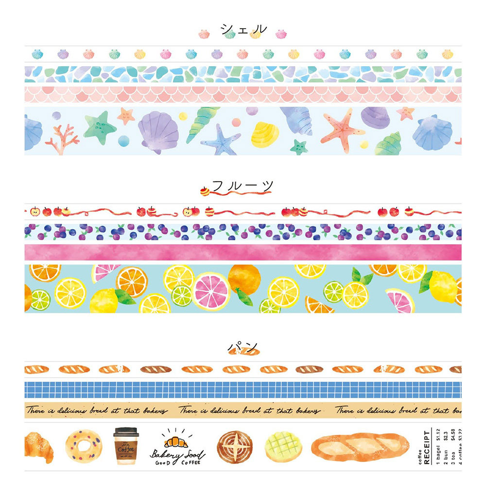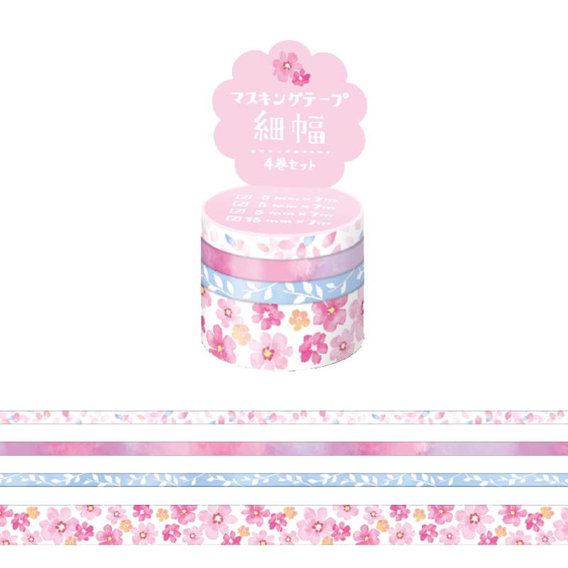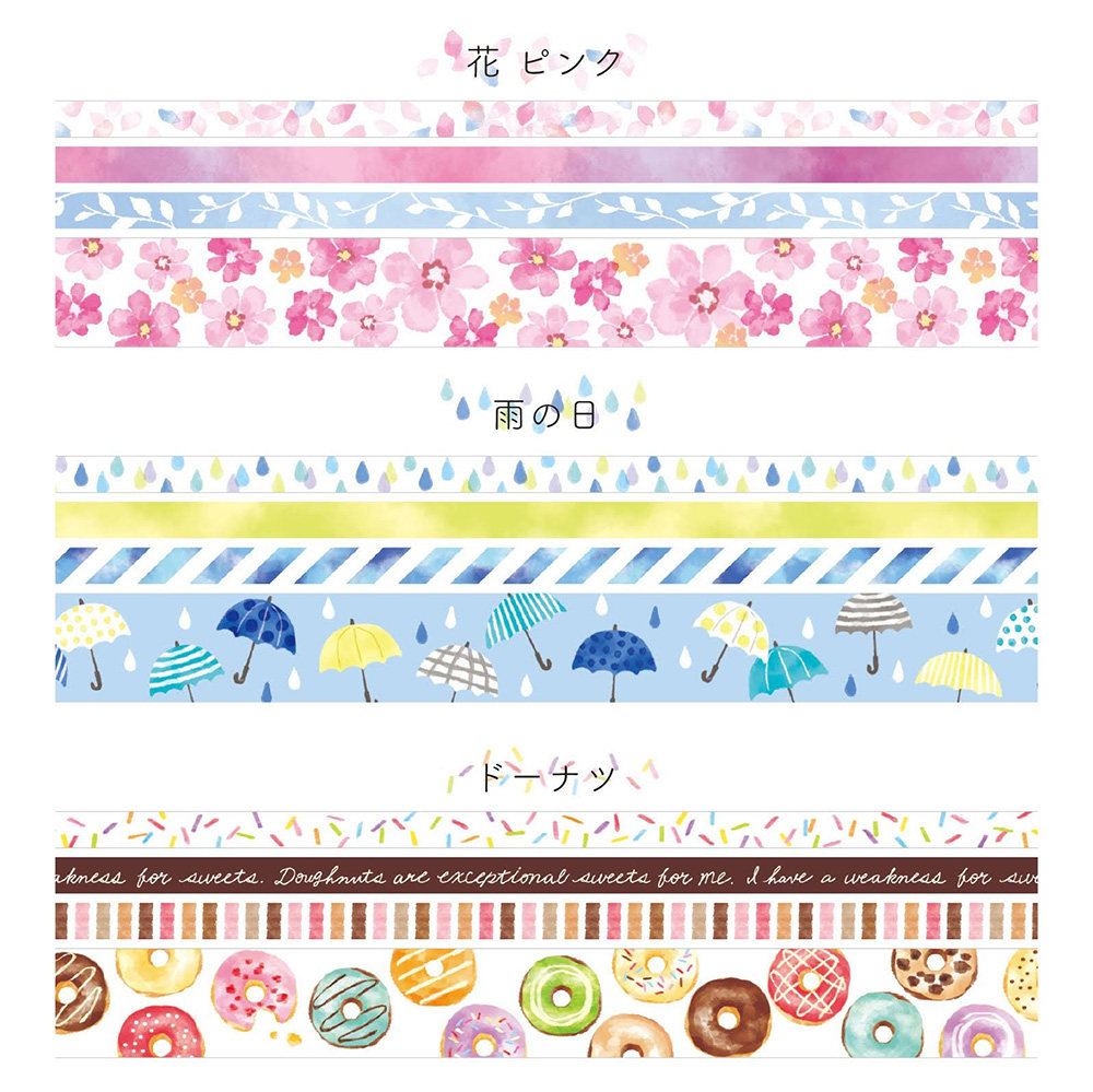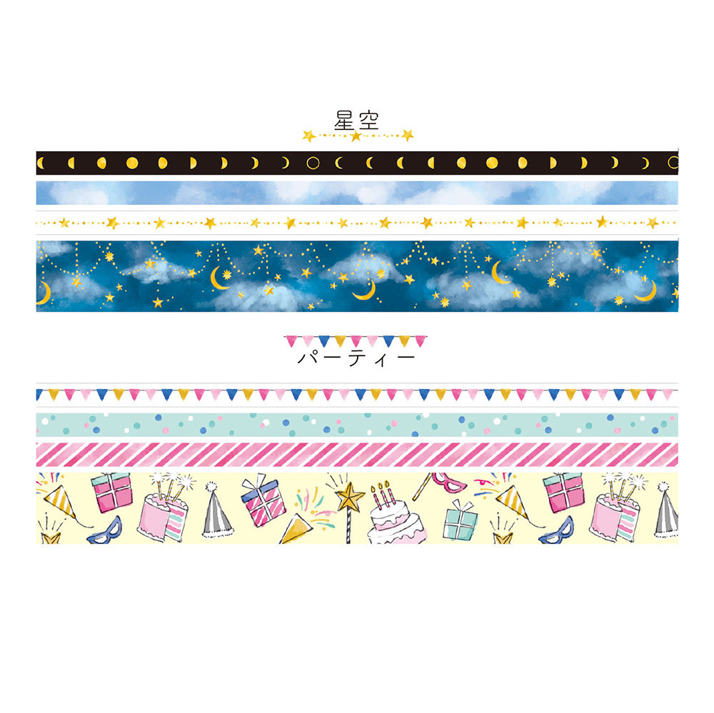 日本mind wave assort系列4卷装细幅和纸胶带手撕手帐相册装饰拼贴素材分隔线5mm15mm贝壳花朵星空甜甜圈面包