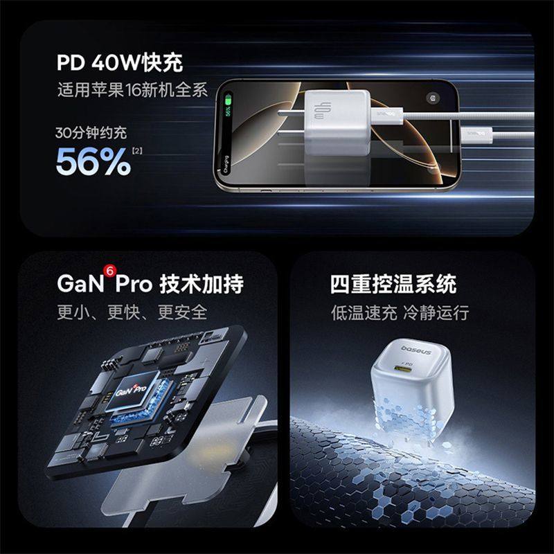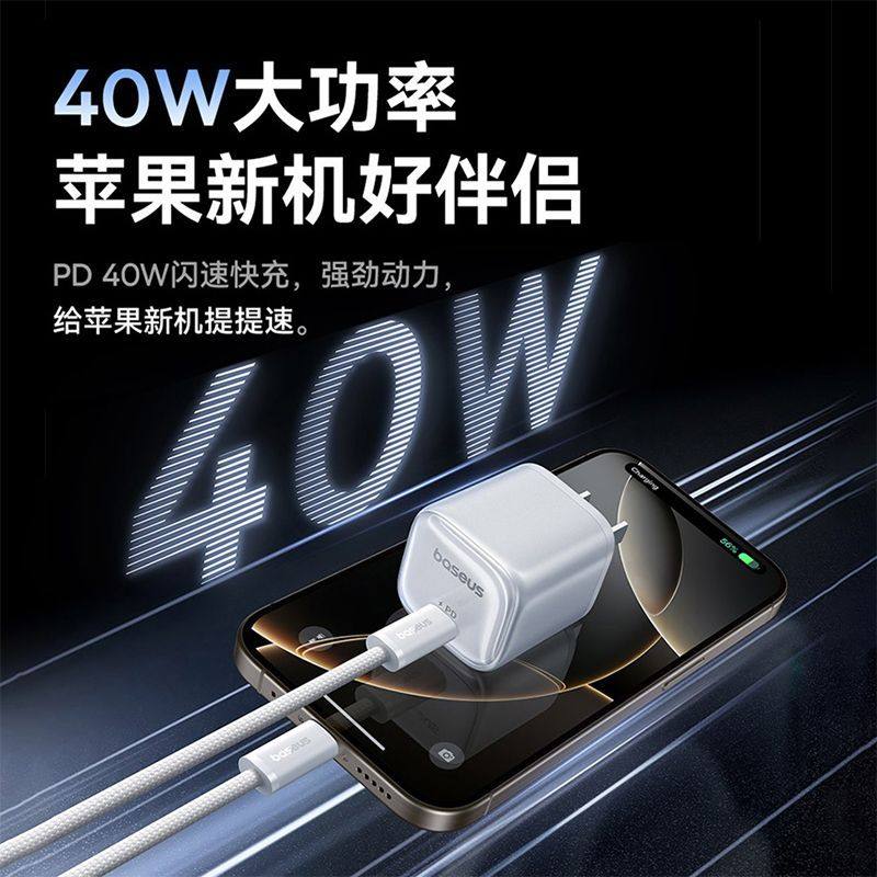 倍思40w氮化镓快充头适用苹果17Promax充电器iPhone15 PD30w充电头16Pro手机ipad数据线typec插头14小巧便捷