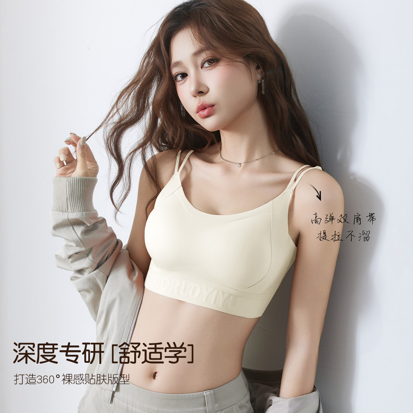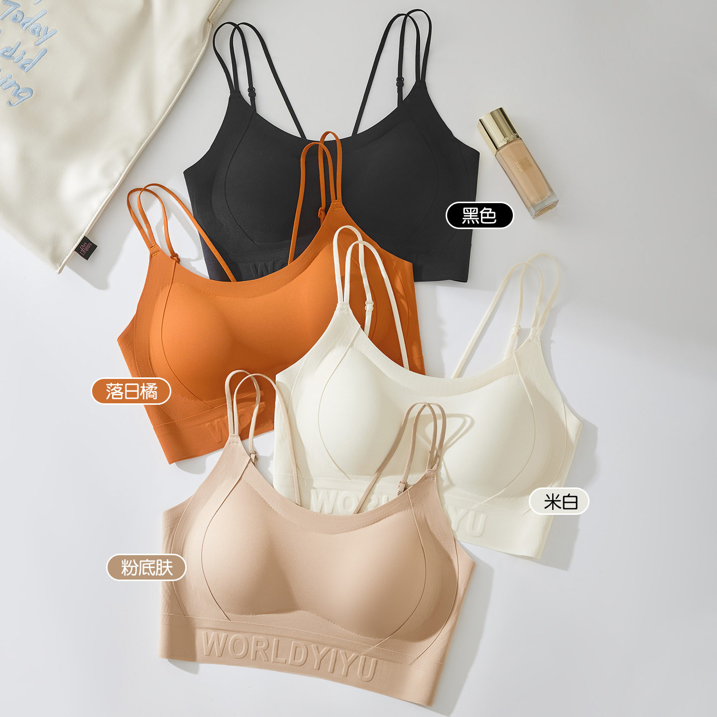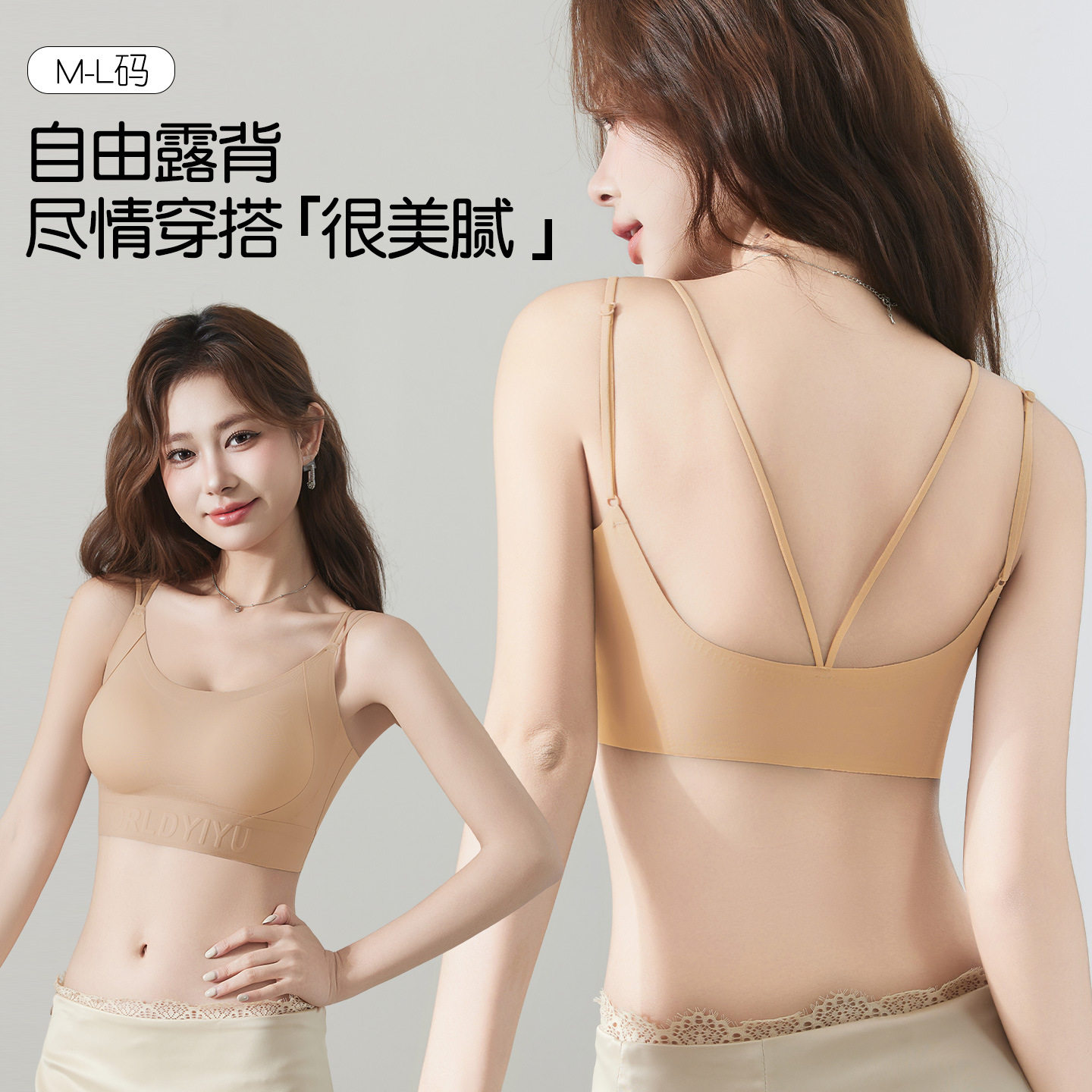 青子菁美背内衣女吊带文胸一体背心式薄款无痕文胸
