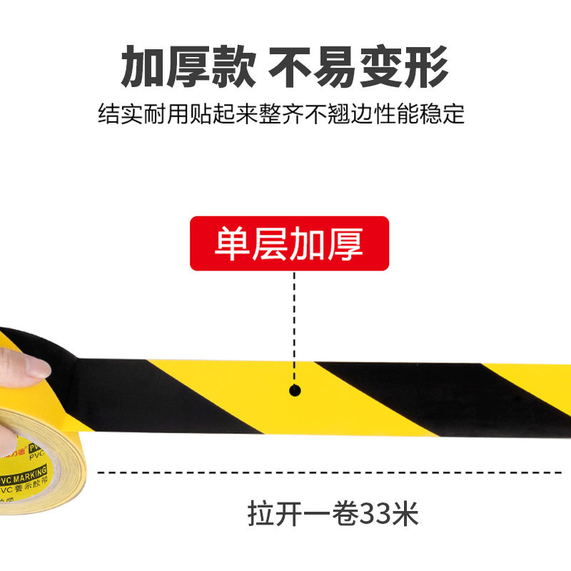 PVC警示胶带黑黄斑马线警戒隔离带地板胶带消防标识彩色定位胶带