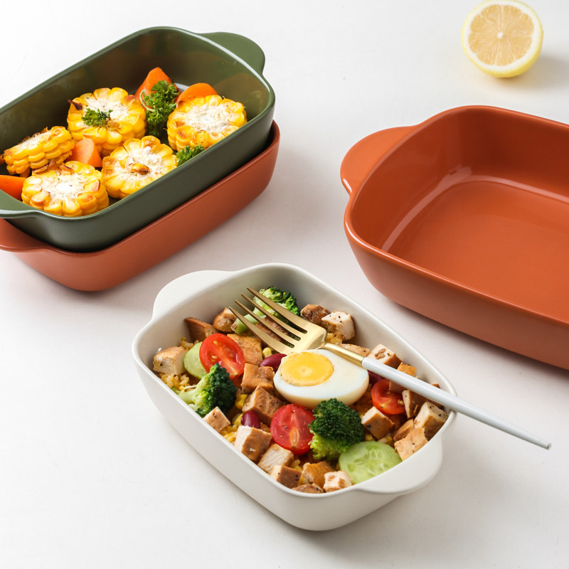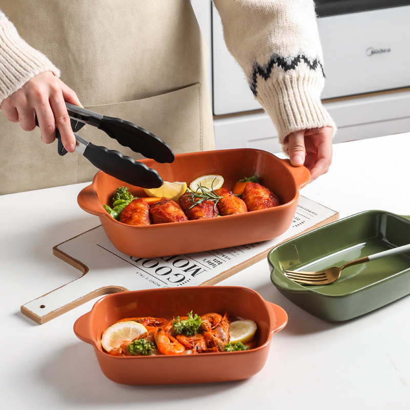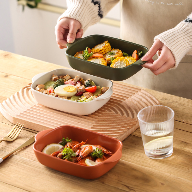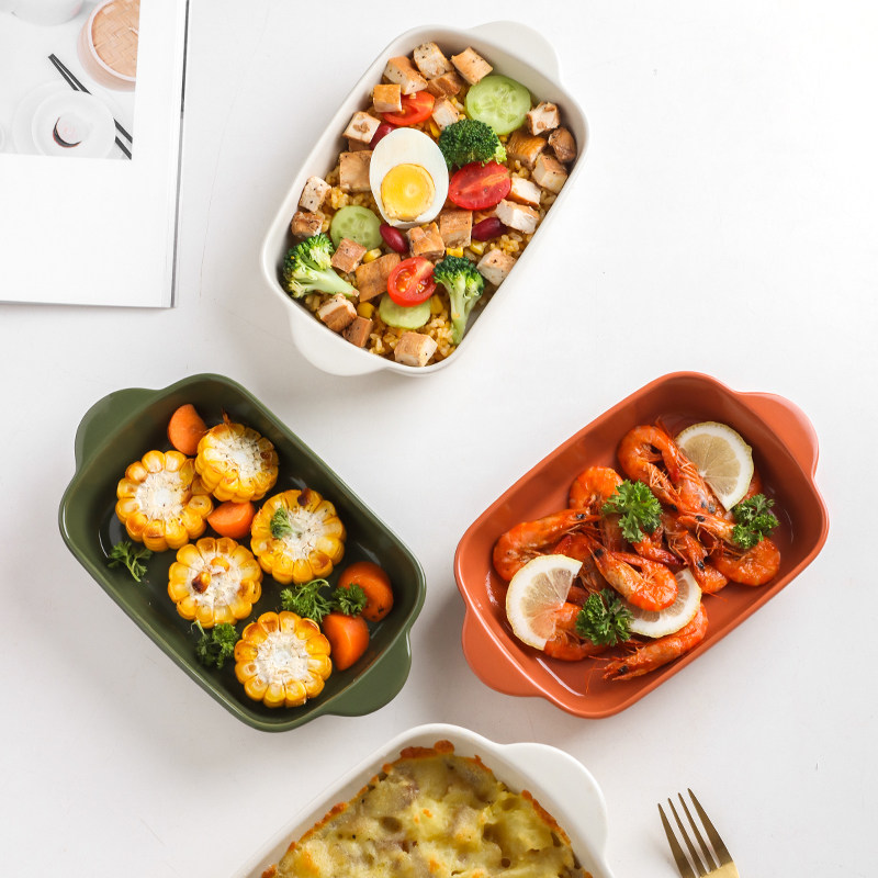 川岛屋芝士焗饭烤盘烤箱专用器皿陶瓷碗餐具长方形双耳微波炉盘子