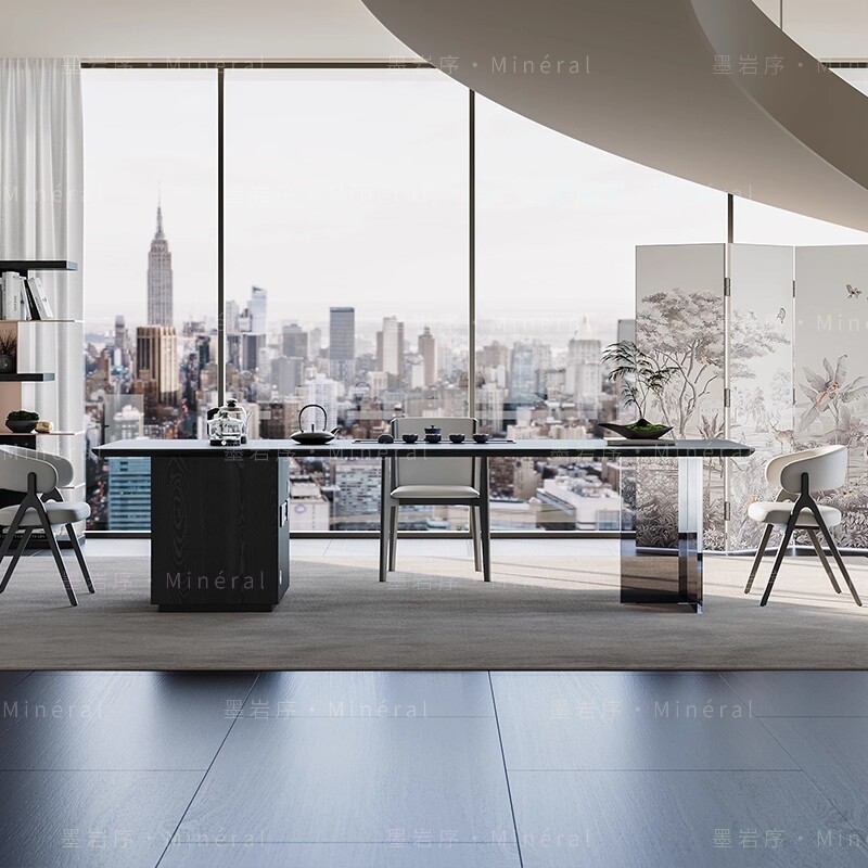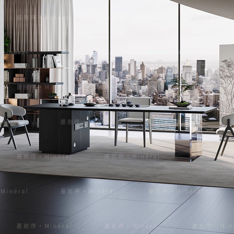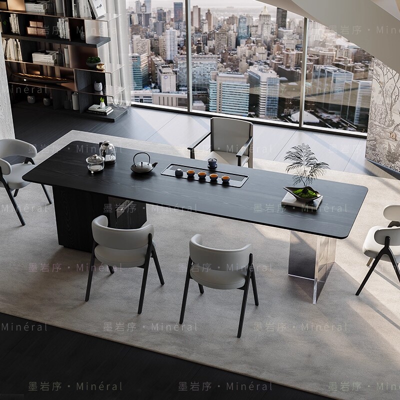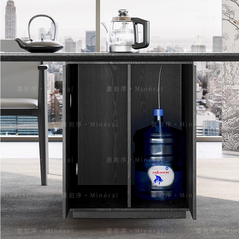 实木纯黑亚克力茶桌搭配烧水储物极简新中式轻奢现代客厅办公室