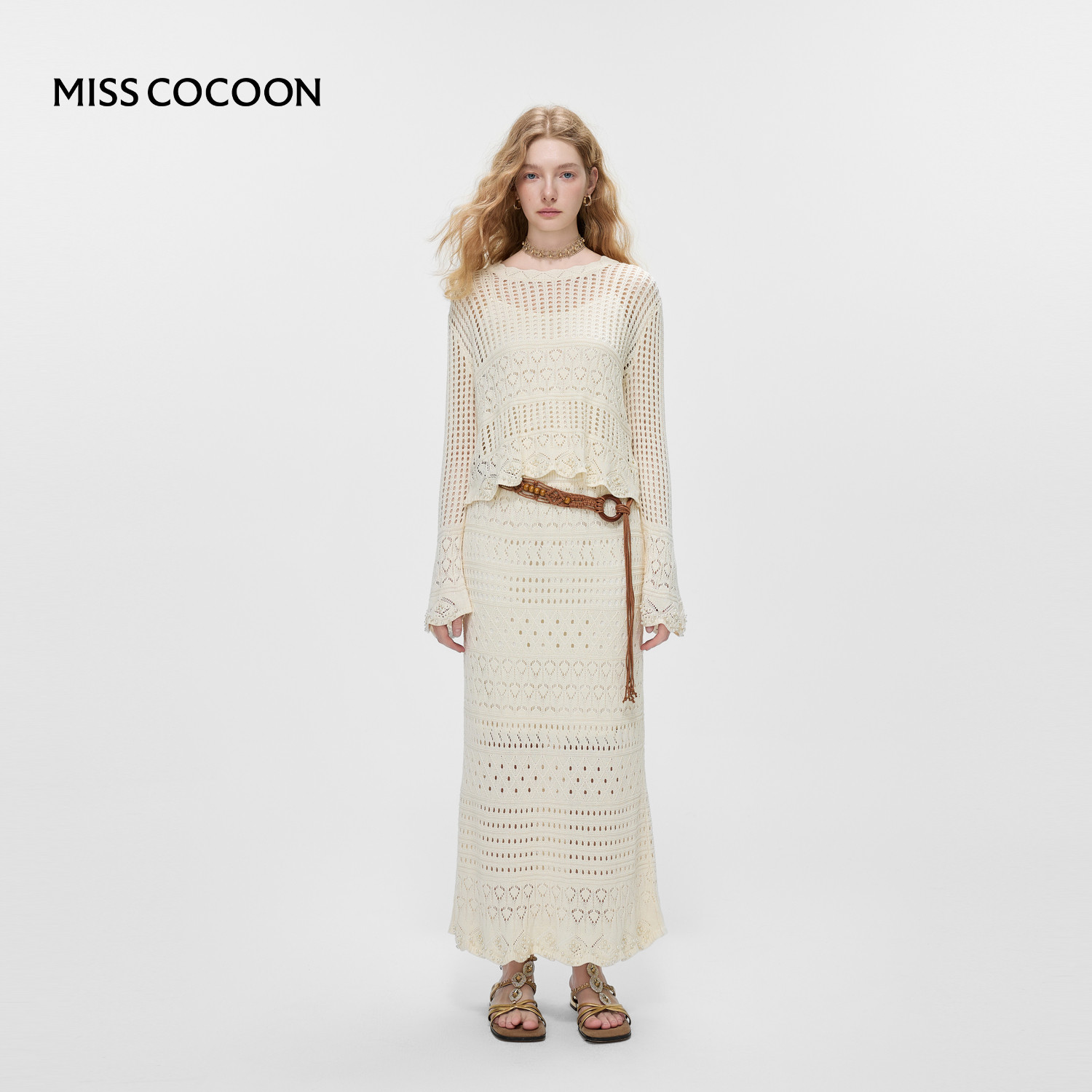 MISSCOCOON可可尼针织镂空套装女2025年秋季新款度假上衣气质裙子