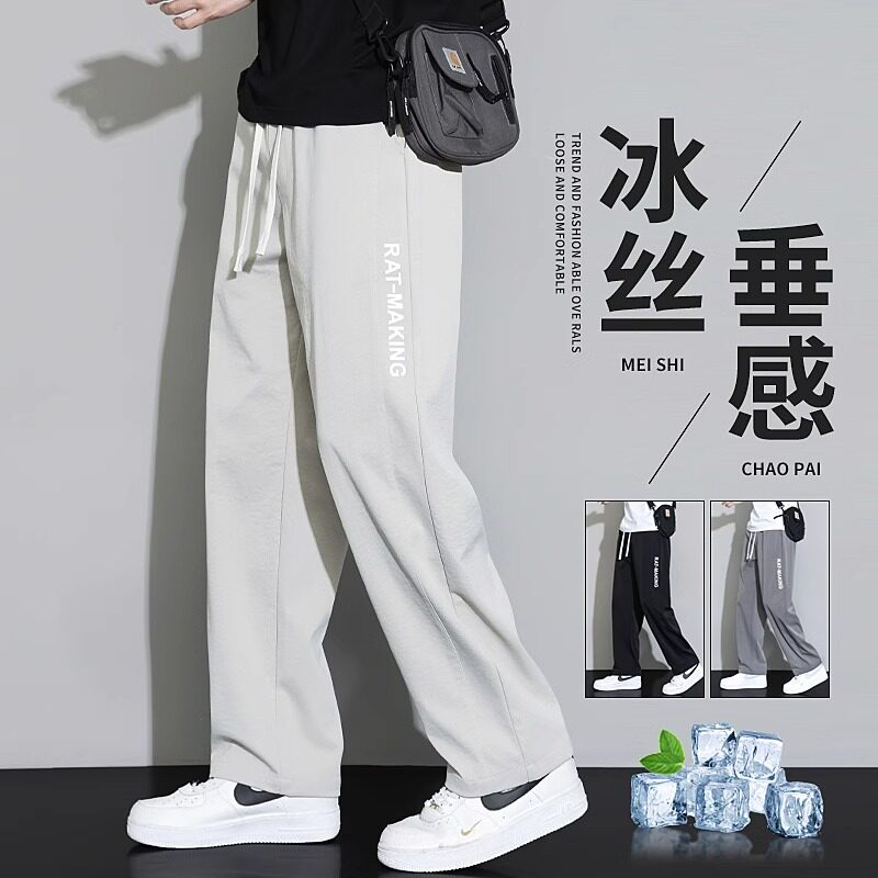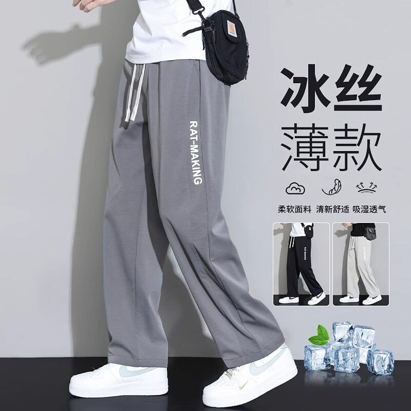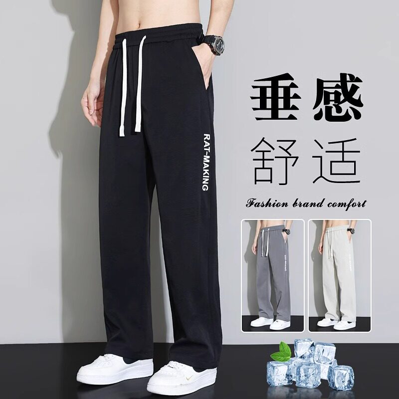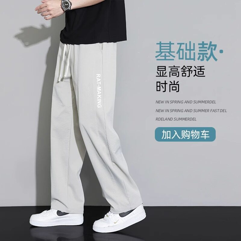 休闲裤男士2026新款春季宽松直筒运动夏季薄款冰丝男裤长裤子男款